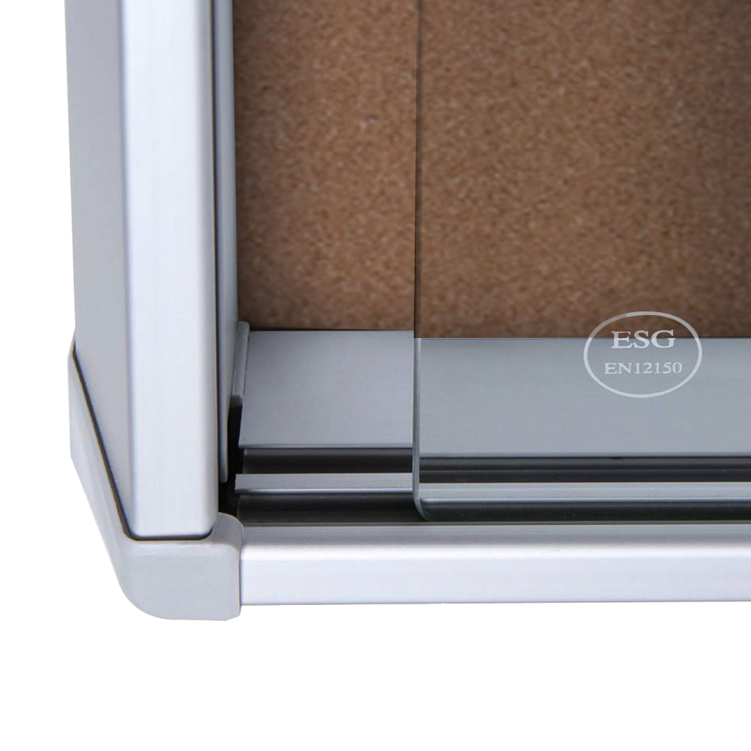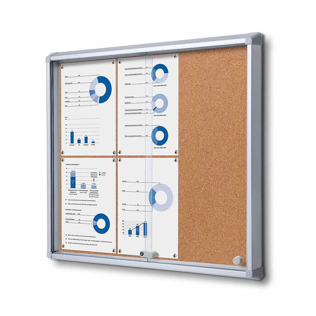 Bacheca per interni ad ante scorrevoli in vetro temperato e fondo in sughero