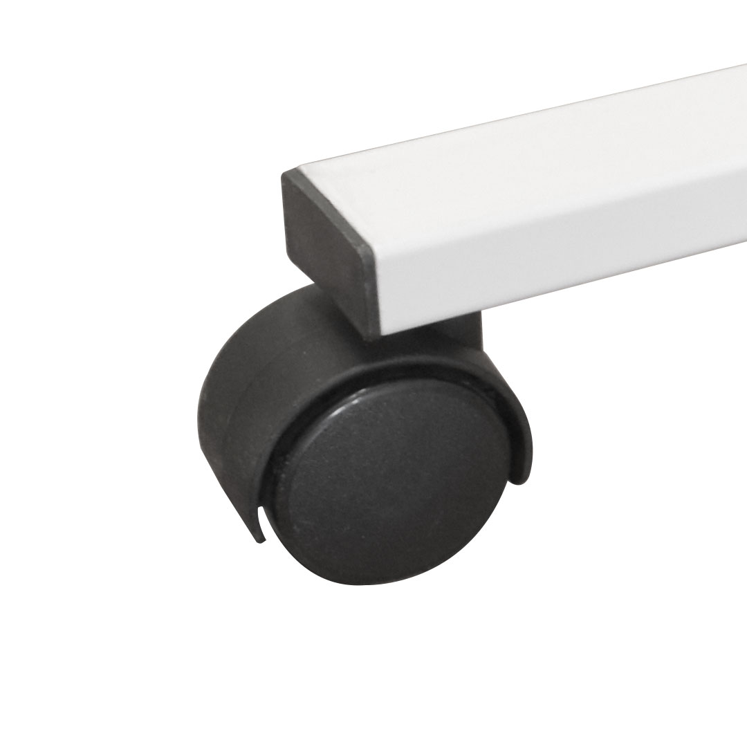 La lavagna vanta una cornice perimetrale in alluminio anodizzato silver con angoli arrotondati in moplen grigio chiaro, garantendo durata e stile. La struttura di supporto, realizzata in alluminio anodizzato silver, è facilmente smontabile per una maggiore praticità. Le quattro ruote alla base consentono uno spostamento agevole, adattandosi perfettamente a diversi ambienti di lavoro.