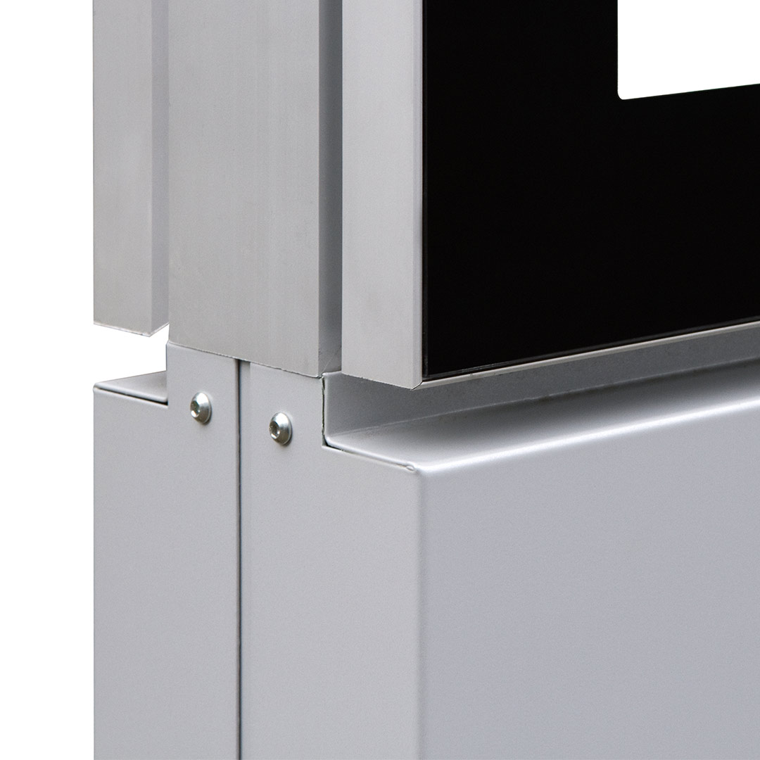 Bacheca autoportante:- fondo retroilluminato a LED;- struttura in alluminio con finitura nero lucido;- anta in vetro temperato di sicurezza ESG;- doppia bacheca (fronte e retro);- serratura con chiavi in dotazione;- certificazione IP56;- per uso esterno.