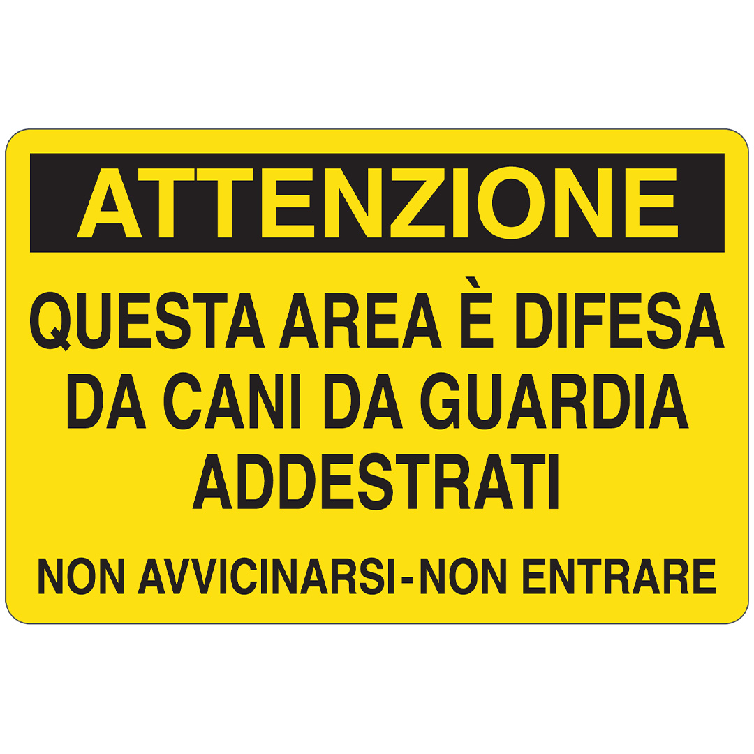 Cartello in alluminio, spessore 1 mm – Attenzione questa area è difesa dai cani da guardia addestrati