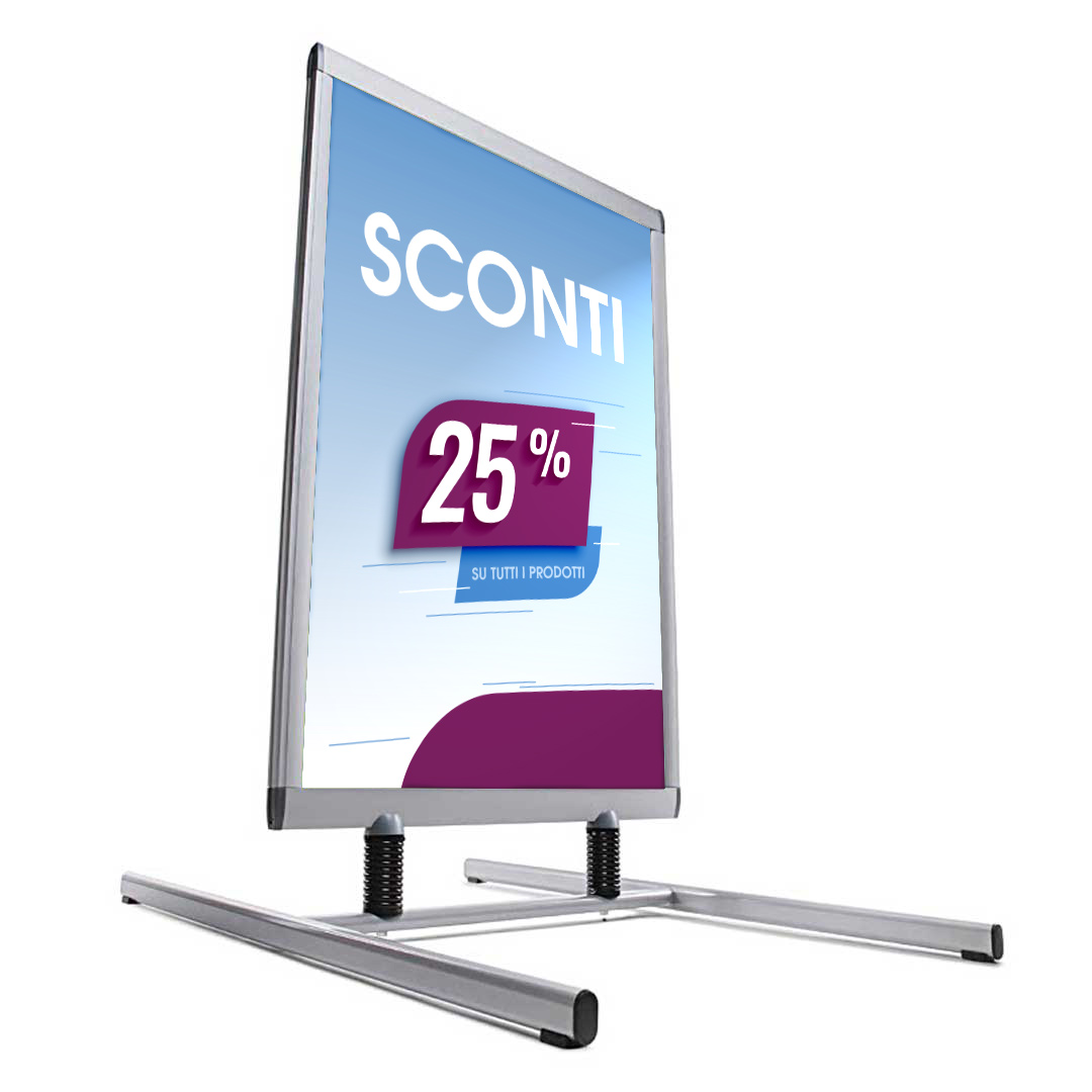 Cavalletto bifacciale per esterni: resistente al vento e versatile