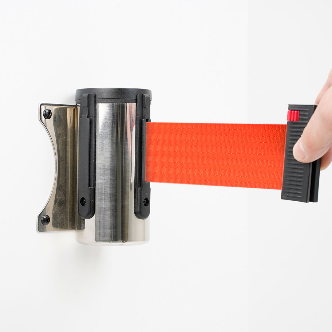 • Sistema retrattile: Il nastro si riavvolge automaticamente, scomparendo all’interno della colonna quando non in uso.