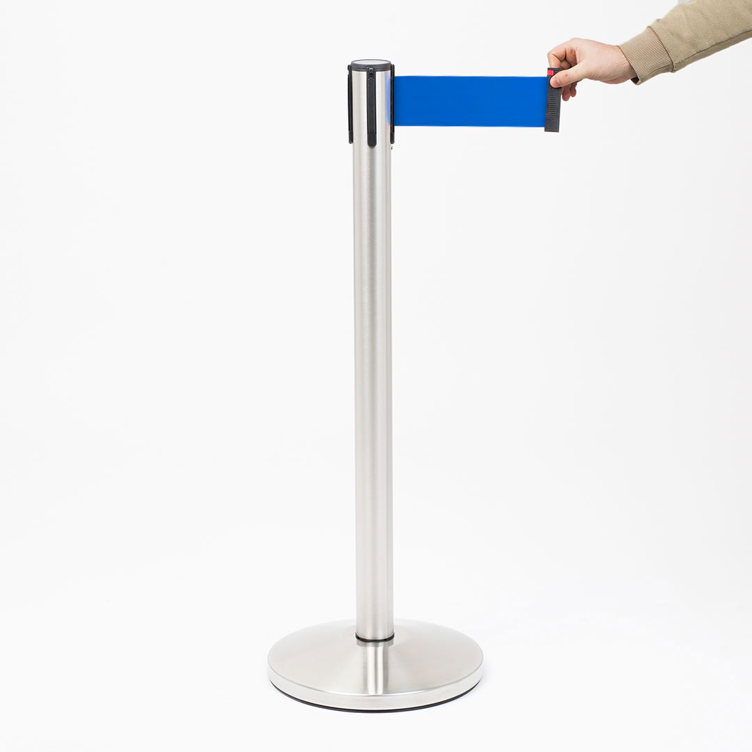 Colonnina in acciaio spazzolato con nastro 3 metri altezza 8 cm