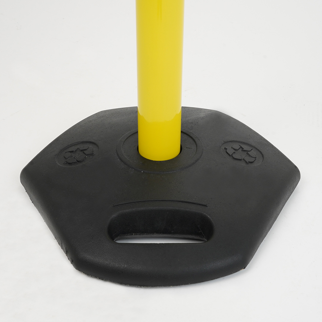 Colonnina in PVC giallo con base in plastica nera e doppio nastro 3,5 metri giallo/nero