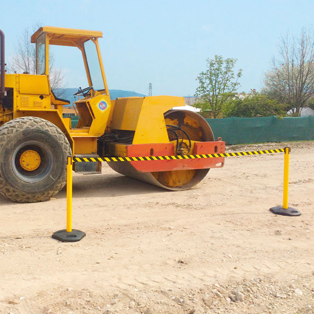 Colonnina in PVC giallo con base in plastica nera e nastro 3,5 metri giallo/nero