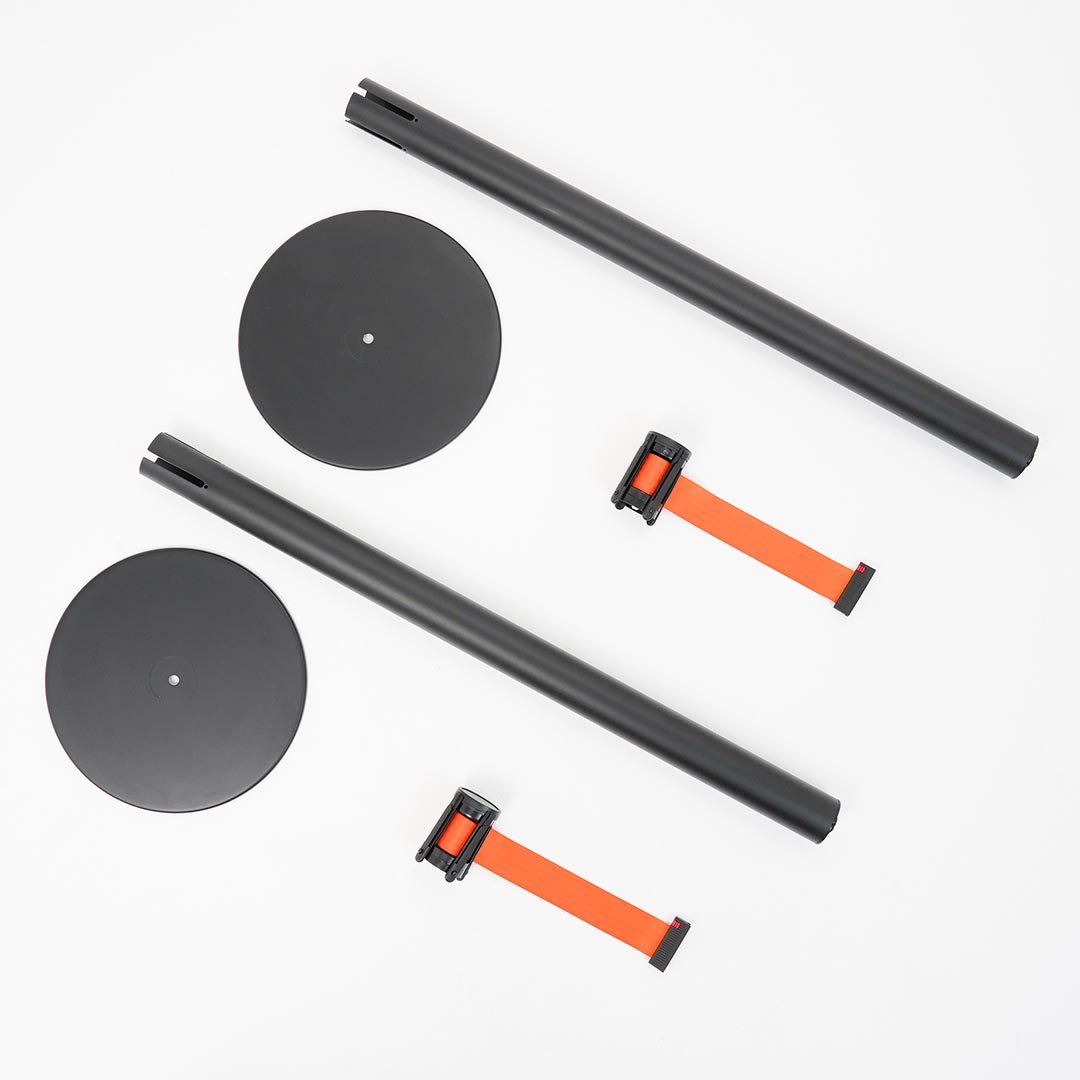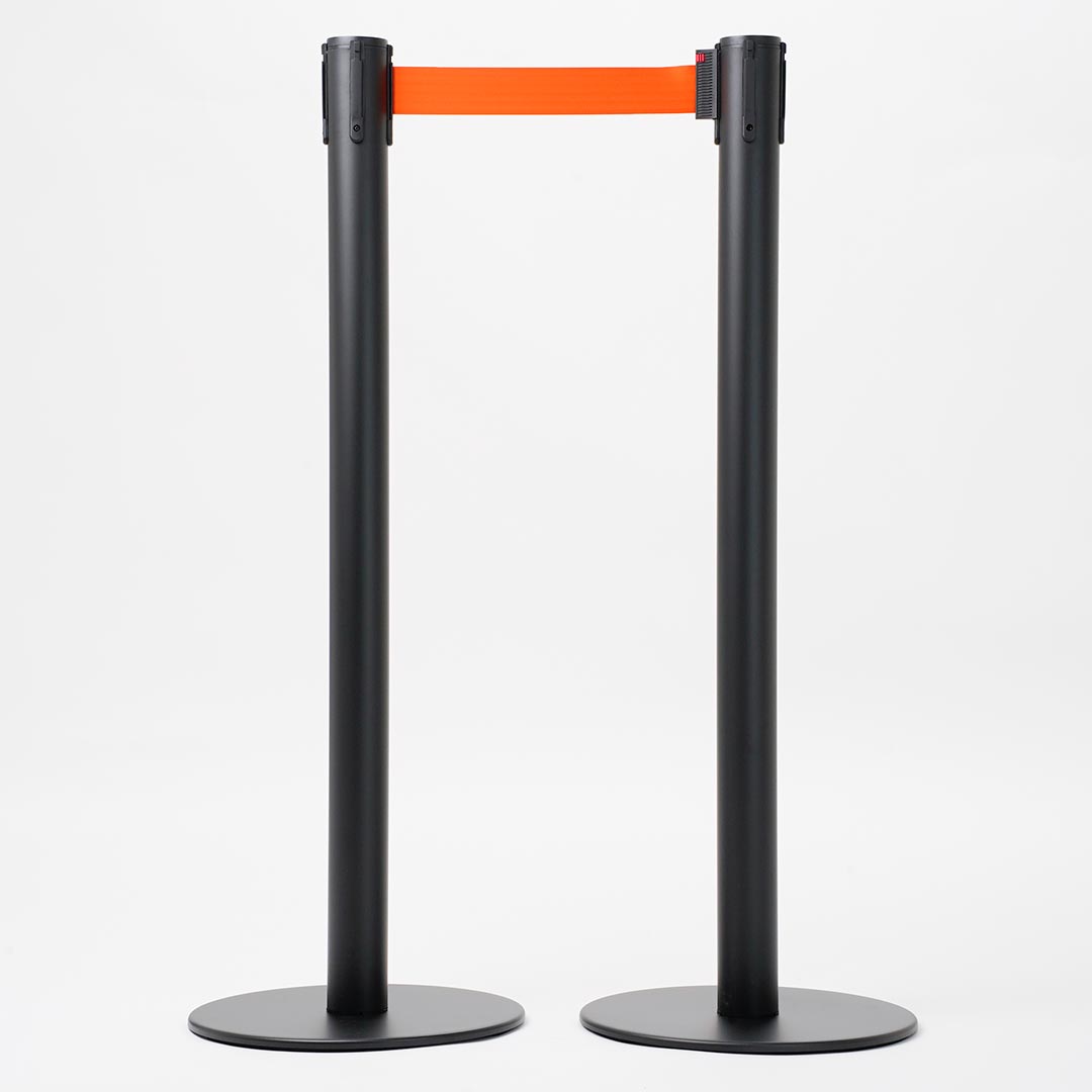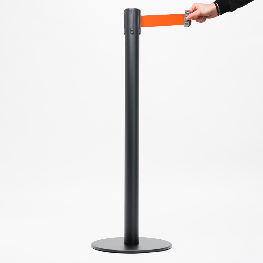 Colonnina Tendilinea 15kg base piatta, finitura nero e nastro 3 metri