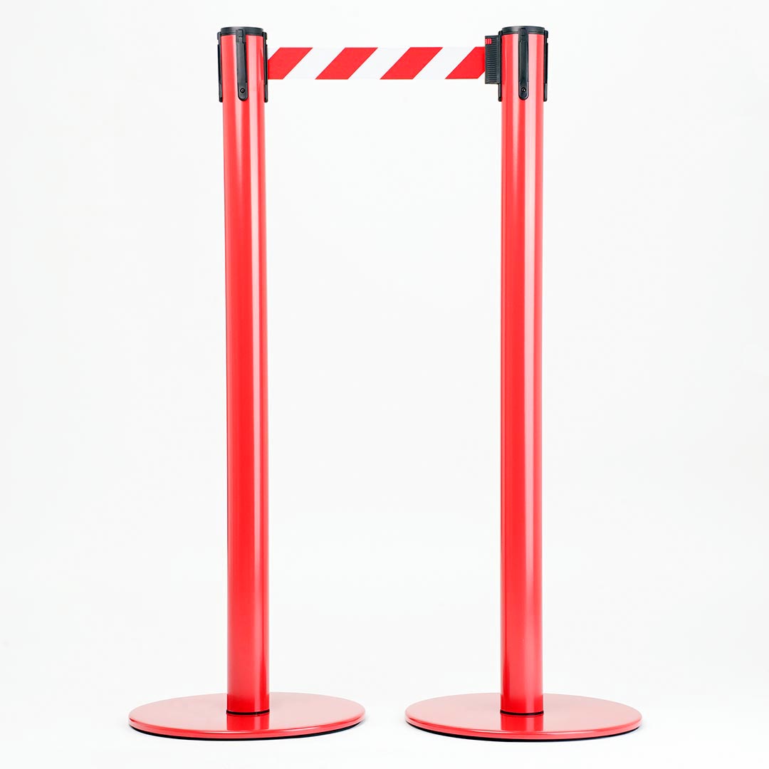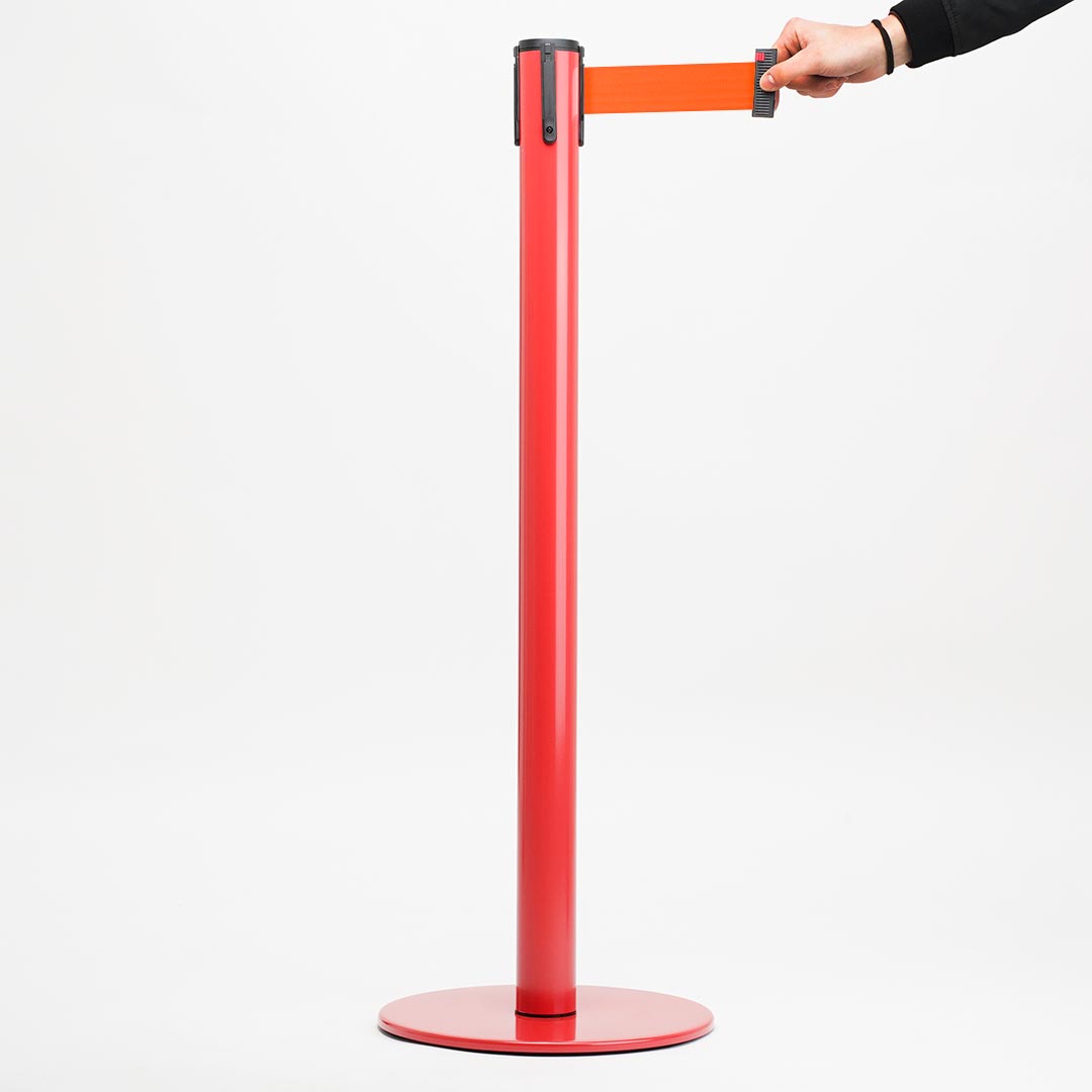 Colonnina Tendilinea 15kg base piatta, finitura rosso e nastro 3 metri