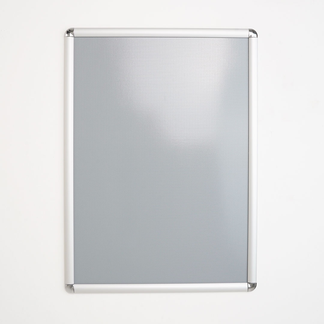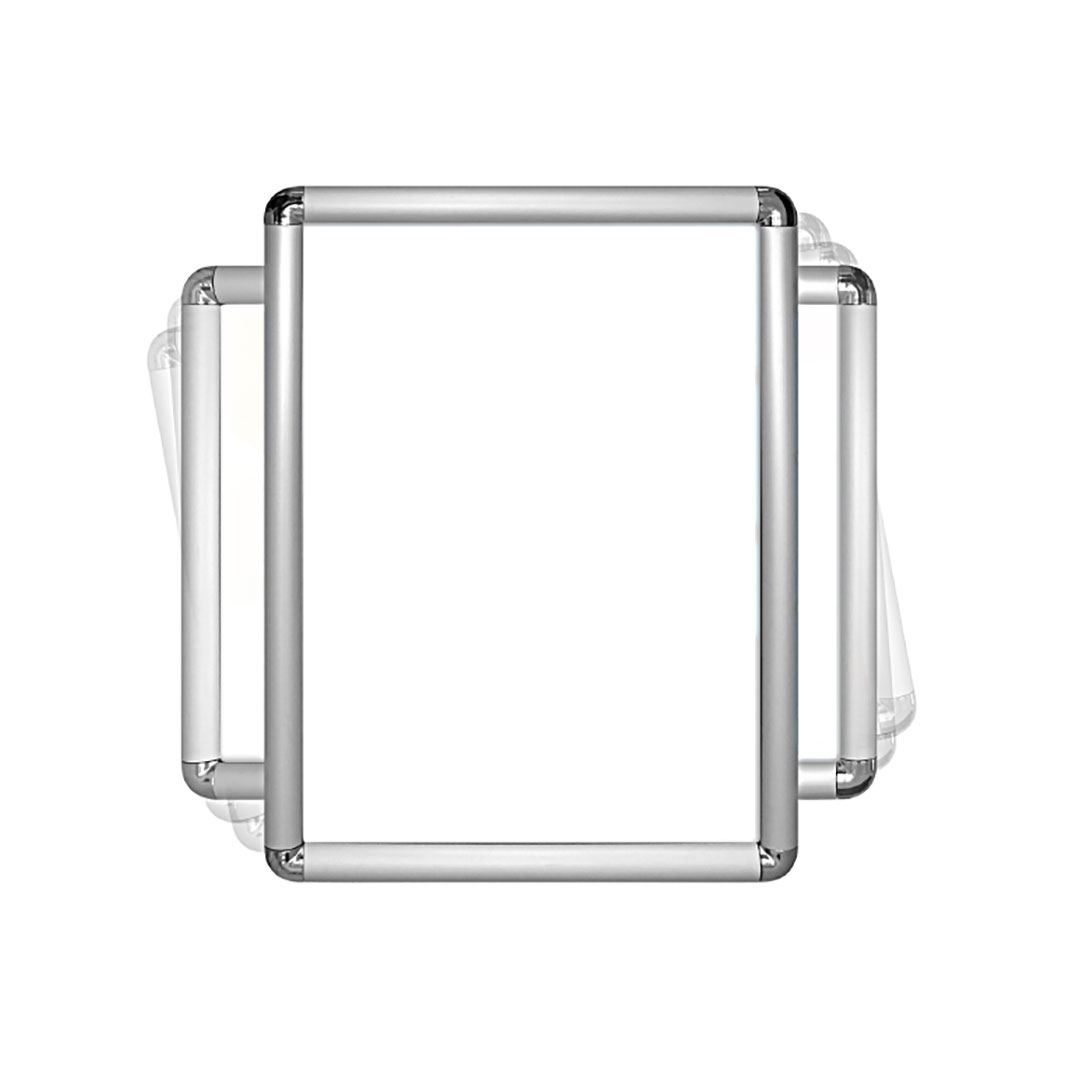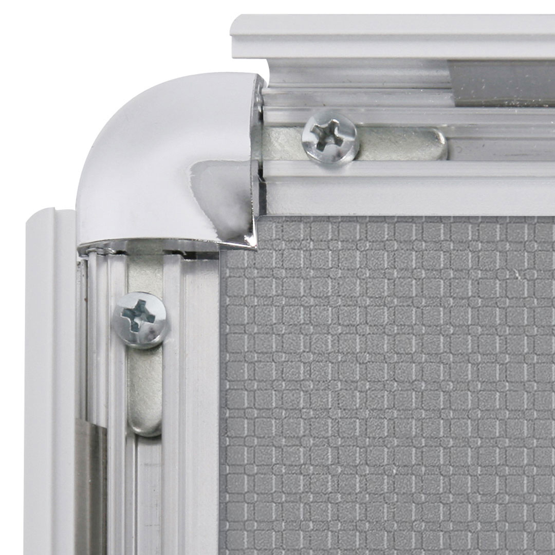 Cornice a scatto con profili frame 25 mm, angoli tondi e PVC frontale anti-riflesso