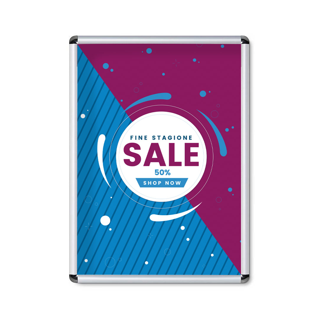 Disponibile in una vasta gamma di dimensioni, dal compatto A5 al grande formato B1, e nelle finiture argento e nero, troverai sicuramente la soluzione perfetta per le tue esigenze di comunicazione visiva.