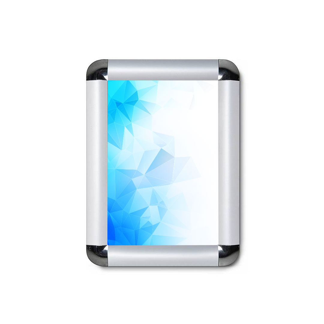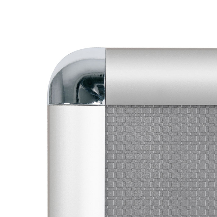 Cornice a scatto con profili frame 25 mm, angoli tondi e PVC frontale anti-riflesso