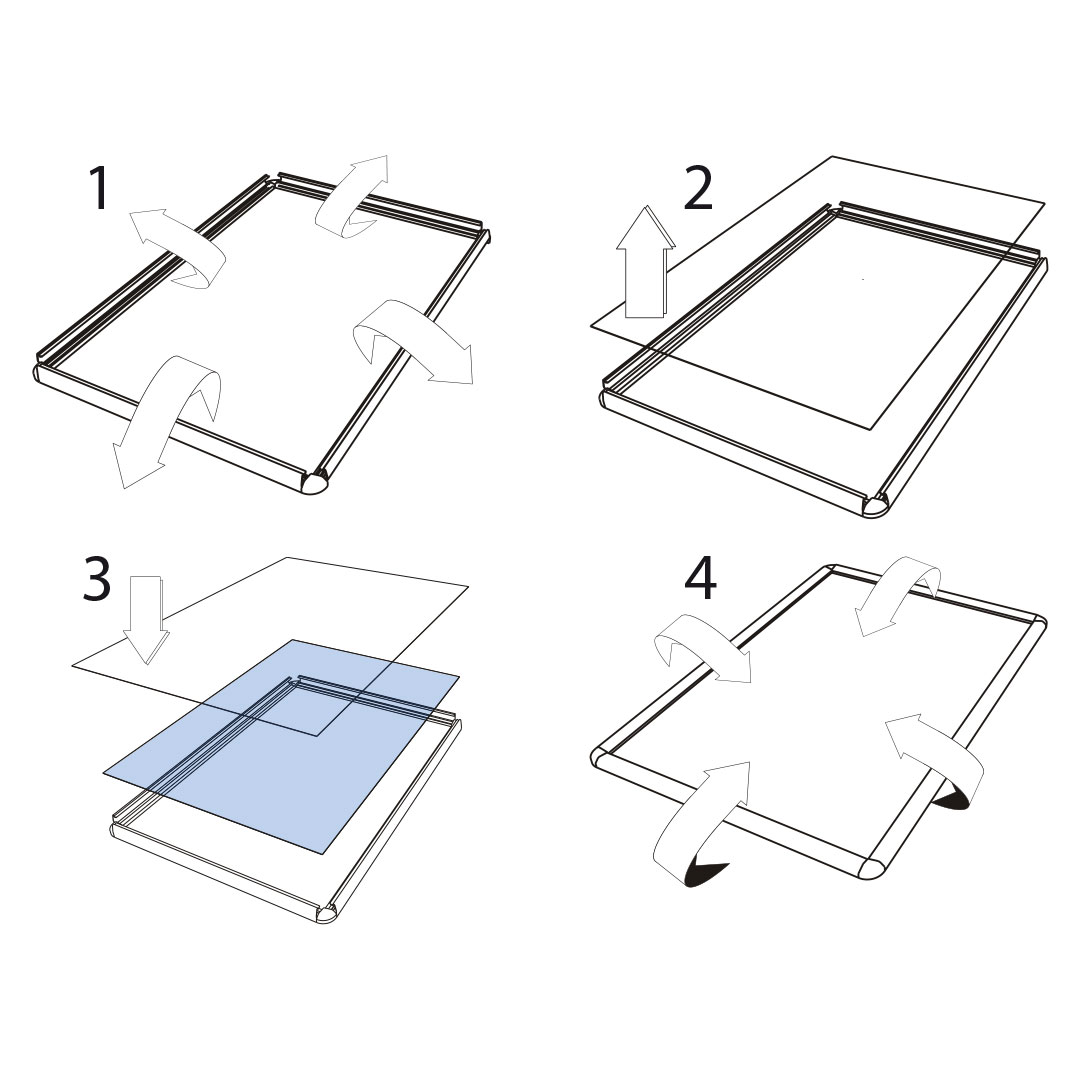 Il nostro sistema a scatto brevettato permette di aggiornare i contenuti in pochi secondi. Basta un semplice gesto per aprire la cornice, inserire la nuova grafica e il foglio protettivo in PVC trasparente. Mai stato così facile mantenere le tue comunicazioni sempre aggiornate!