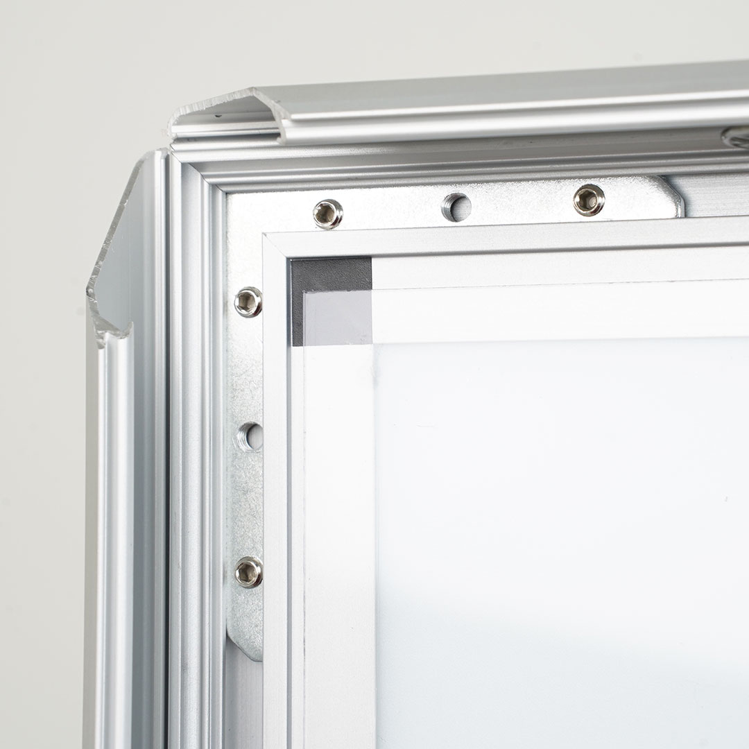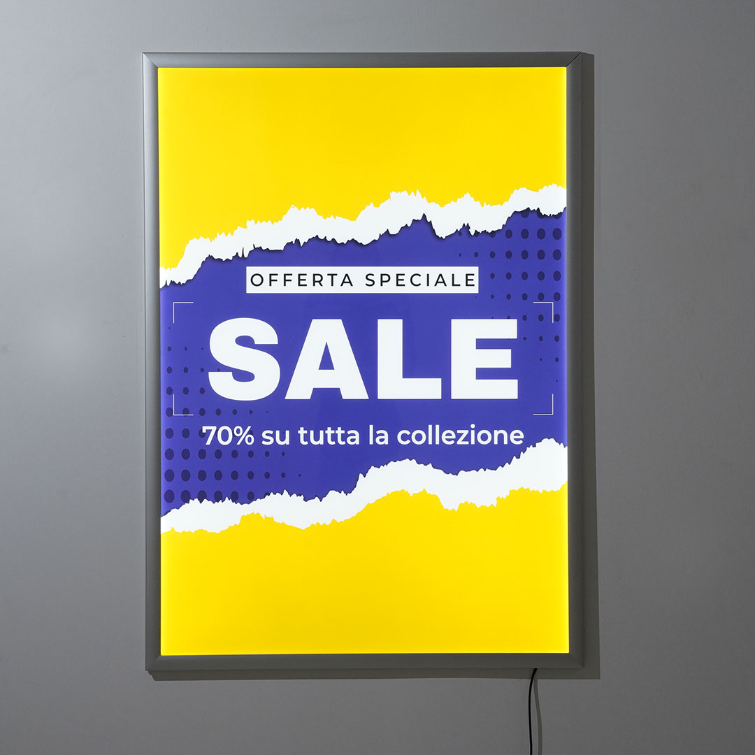 Il design con angoli vivi e il meccanismo a scatto rendono questa cornice LED la soluzione ideale per esporre informazioni in modo professionale. La facilità di apertura permette di aggiornare rapidamente i contenuti, mantenendo sempre la tua comunicazione al passo con le esigenze della tua attività.