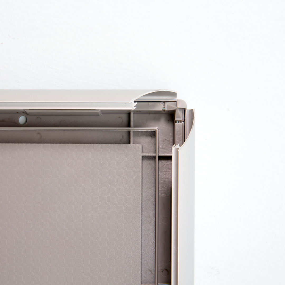 Scopri la soluzione ideale per una comunicazione visiva efficace e flessibile. Le nostre cornici a scatto con angolo smussato offrono praticità e stile per esporre avvisi, comunicazioni e poster in ambienti professionali.