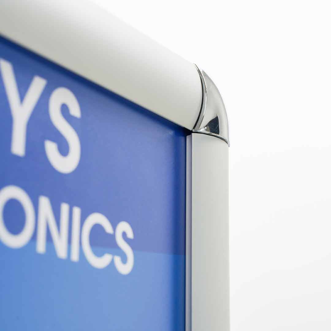 Scegli tra la versione monofacciale con 4 cornici o la bifacciale con 8 cornici a scatto, orientabili sia orizzontalmente che verticalmente. Il sistema di apertura a scatto ti permette di aggiornare i contenuti in pochi secondi, garantendo sempre informazioni fresche e attuali per il tuo pubblico.