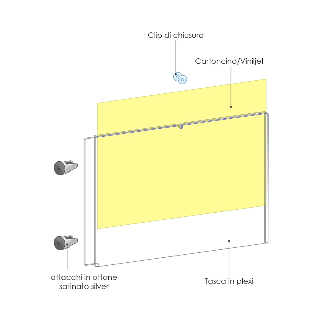 Questo attacco a bandiera non è solo funzionale, ma aggiunge anche un tocco di eleganza alla tua segnaletica. La finitura argento satinato si adatta perfettamente a qualsiasi ambiente professionale, garantendo che le tue indicazioni siano sempre chiare e ben visibili.