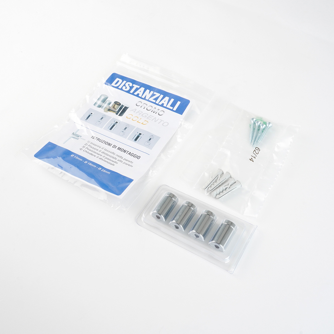 Dona un tocco di classe e professionalità alla tua attività con i nostri distanziali in ottone cromato lucido. Progettati per il fissaggio a parete di targhe professionali, questi eleganti supporti sono la soluzione ideale per valorizzare la tua immagine aziendale.