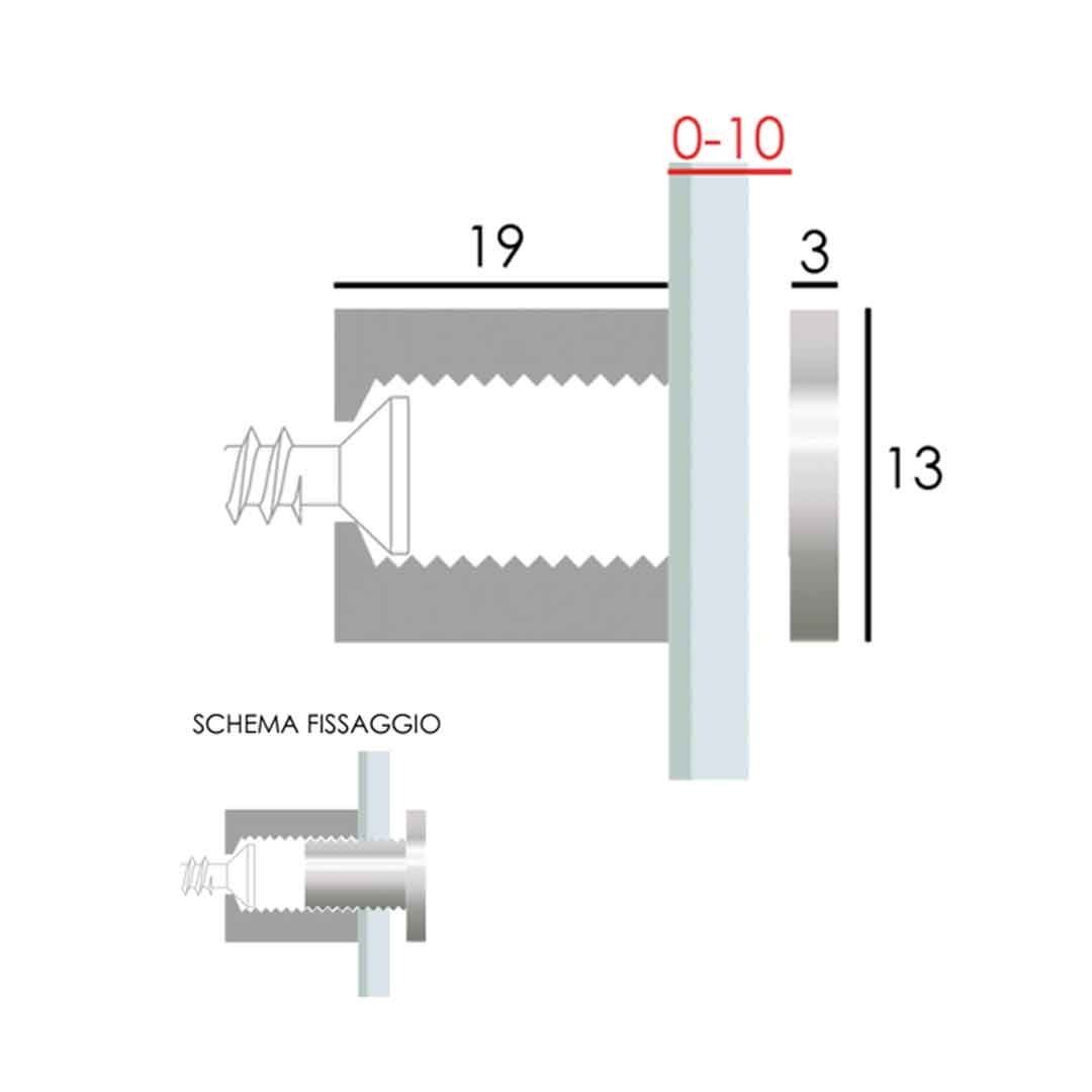 Distanziale per targhe:- in ottone;- dimensioni Ø13×19 mm- spessore targa max 10 mm.