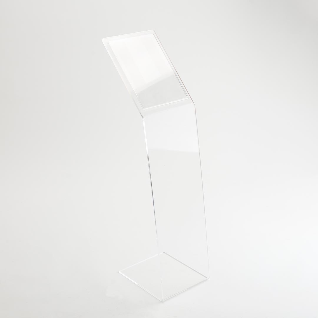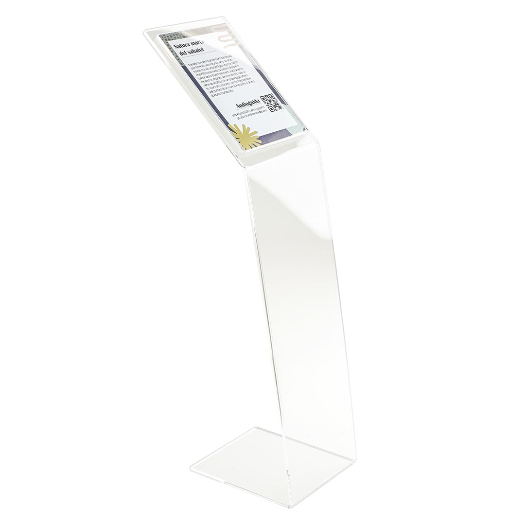 Leggio in plexiglass da terra con base a L da 8mm ad una tasca in plexiglass formato A4 verticale