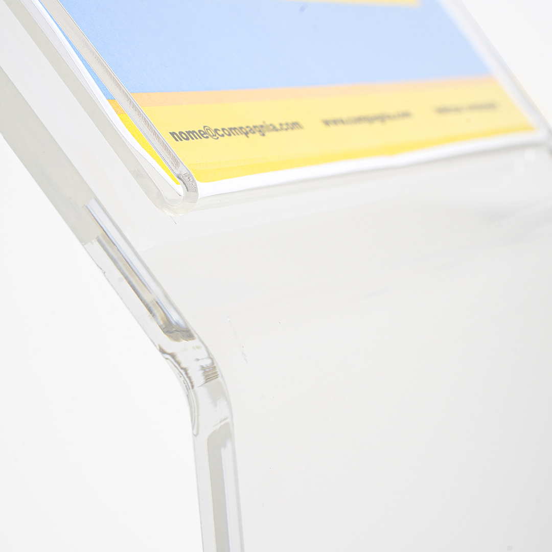 Scopri l’elegante e versatile Leggio ITV07_0023, un espositore minimalista in plexiglass trasparente che unisce stile e praticità. La tasca superiore, progettata per contenere avvisi o comunicazioni in formato A4, ti permette di aggiornare facilmente i contenuti in base alle tue esigenze. La robusta base a L da 8mm garantisce stabilità, rendendolo perfetto per showroom, mostre ed eventi.