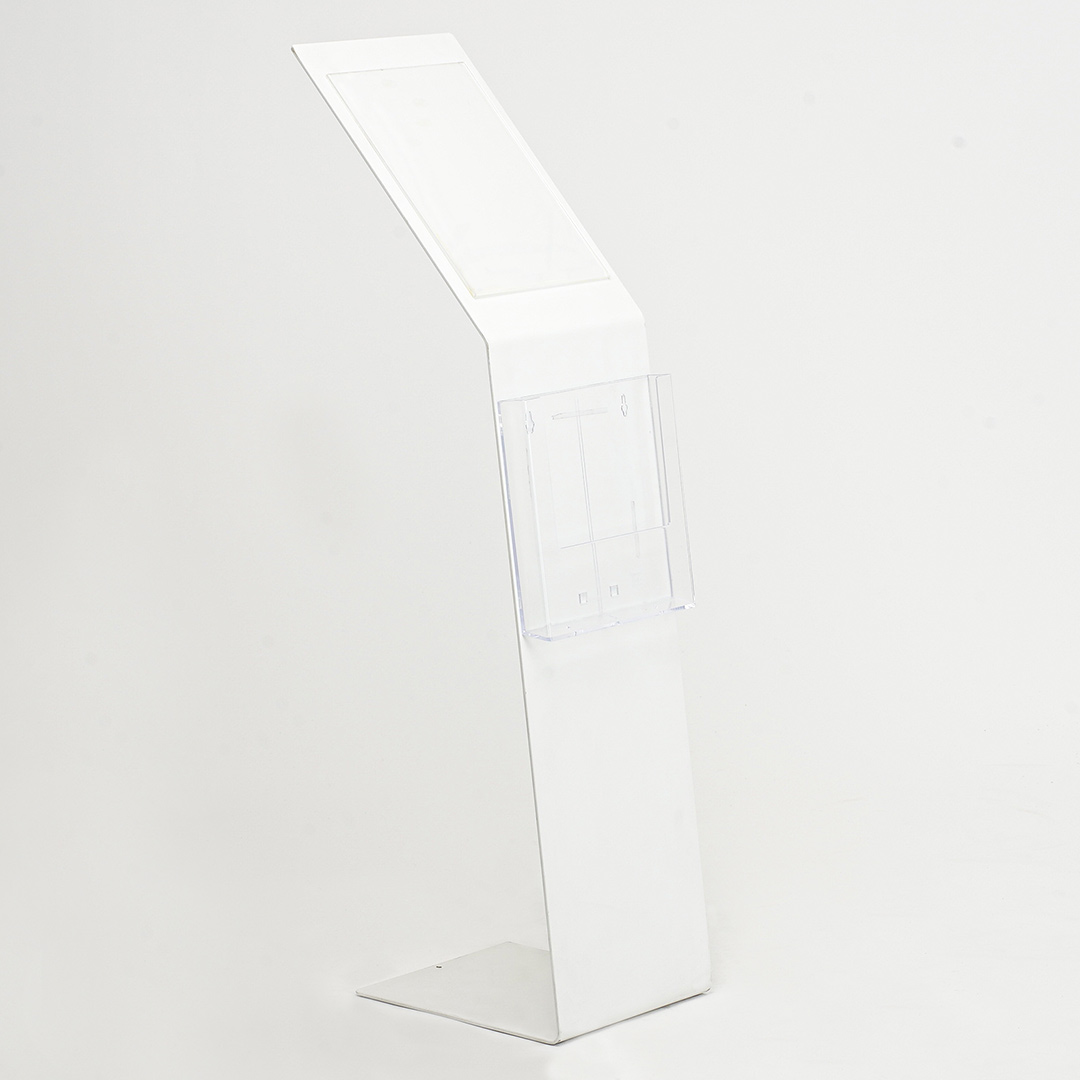 Leggio a L in metallo vernicato con tasca e portadepliant f.to A4 verticale