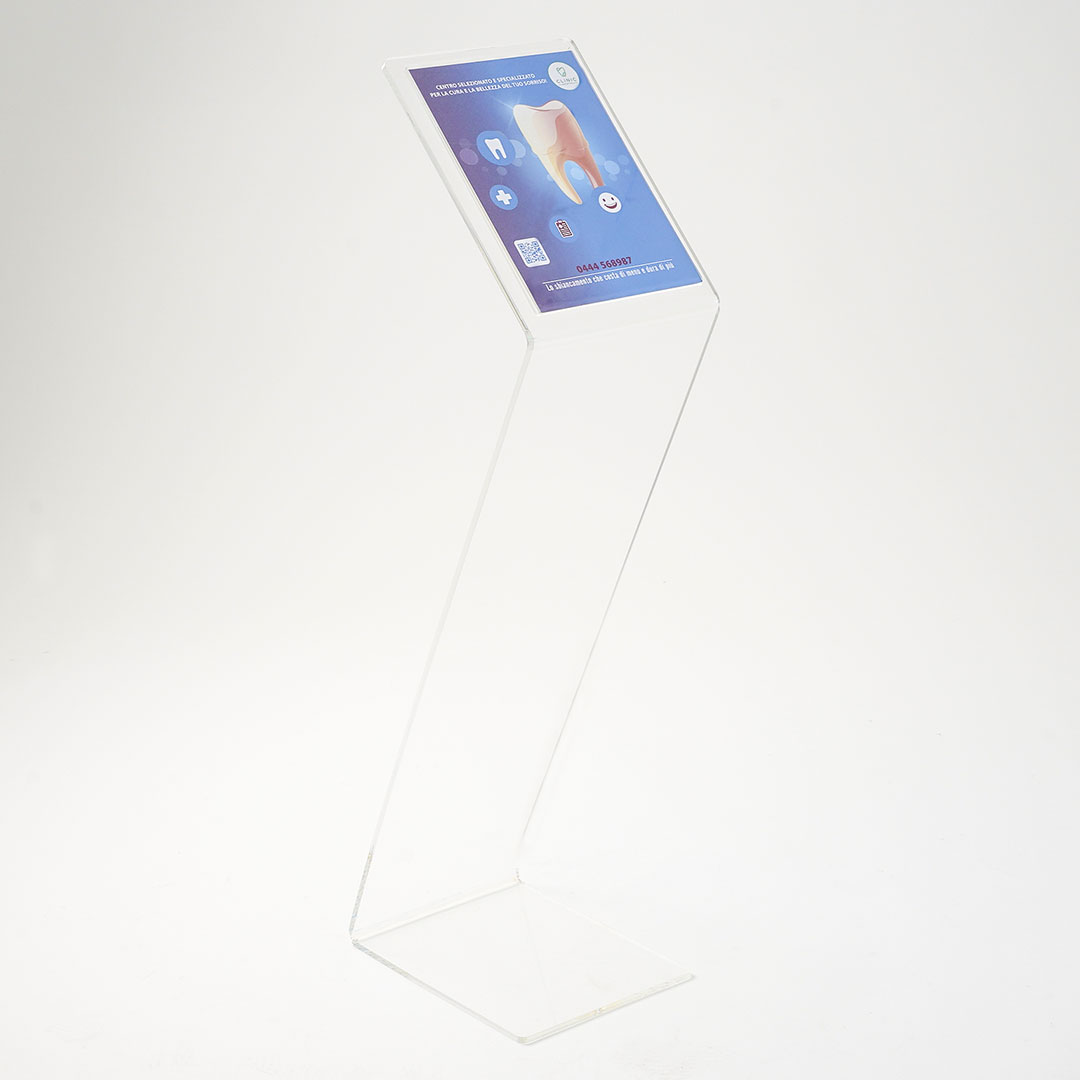Leggio a Z in acrilico con tasca f.to A4 verticale