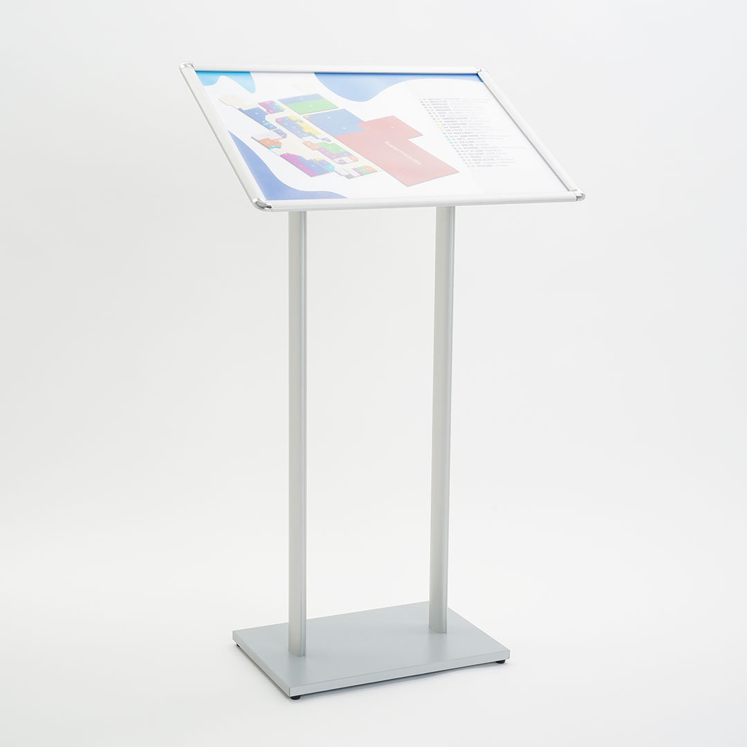 Presenta le tue informazioni con stile utilizzando la nostra elegante cornice a scatto ITV07_0005 in formato A2. Questo espositore a leggio con doppio montante è la soluzione ideale per comunicare in modo efficace con i tuoi clienti.
