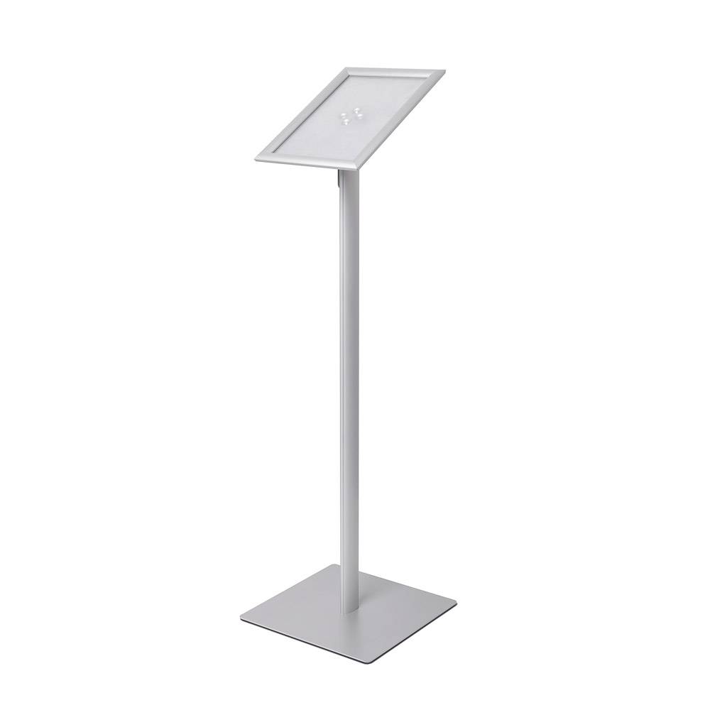 Presenta le tue informazioni con stile ed efficacia grazie al nostro espositore a leggio su piantana. Dotato di una cornice a scatto formato A4 o A3 con angoli vivi, questo dispositivo è l’ideale per esporre materiale informativo in modo professionale e accattivante.