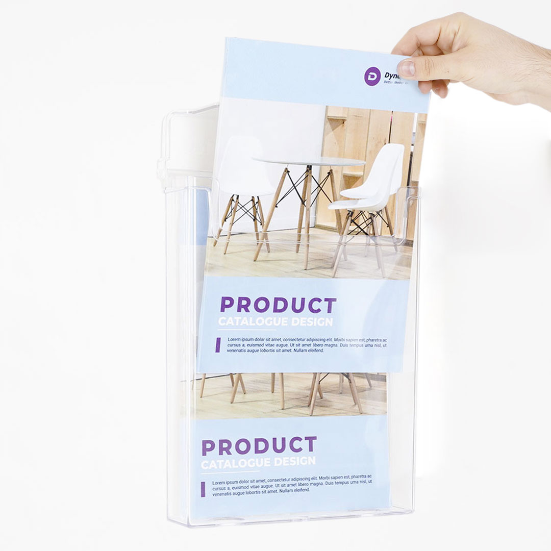 Portadepliant da esterni f.to A4 con apertura di protezione a ribalta