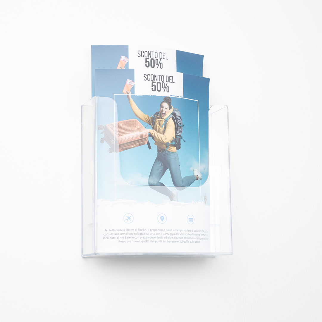 Scopri come questo portadepliant può trasformare il tuo spazio espositivo. Contattaci ora per maggiori informazioni e per portare la tua comunicazione aziendale al livello successivo!