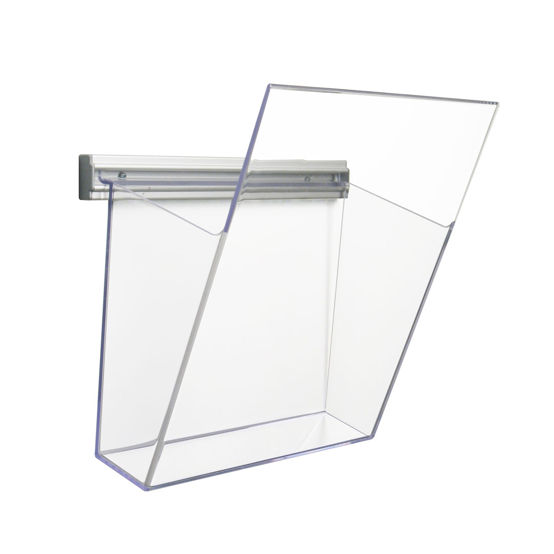 Tag: Espositori da parete, Portadepliant in plexi con barra 25 cm e 1 tasca f.to A4