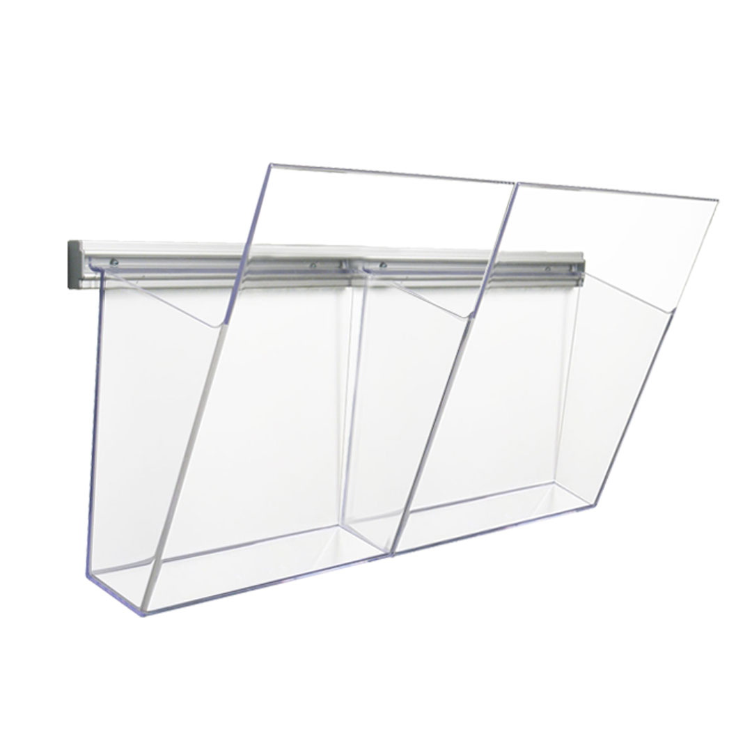 Porta depliant da parete con barra lunghezza 50cm e 2 tasche f.to A4 verticale
