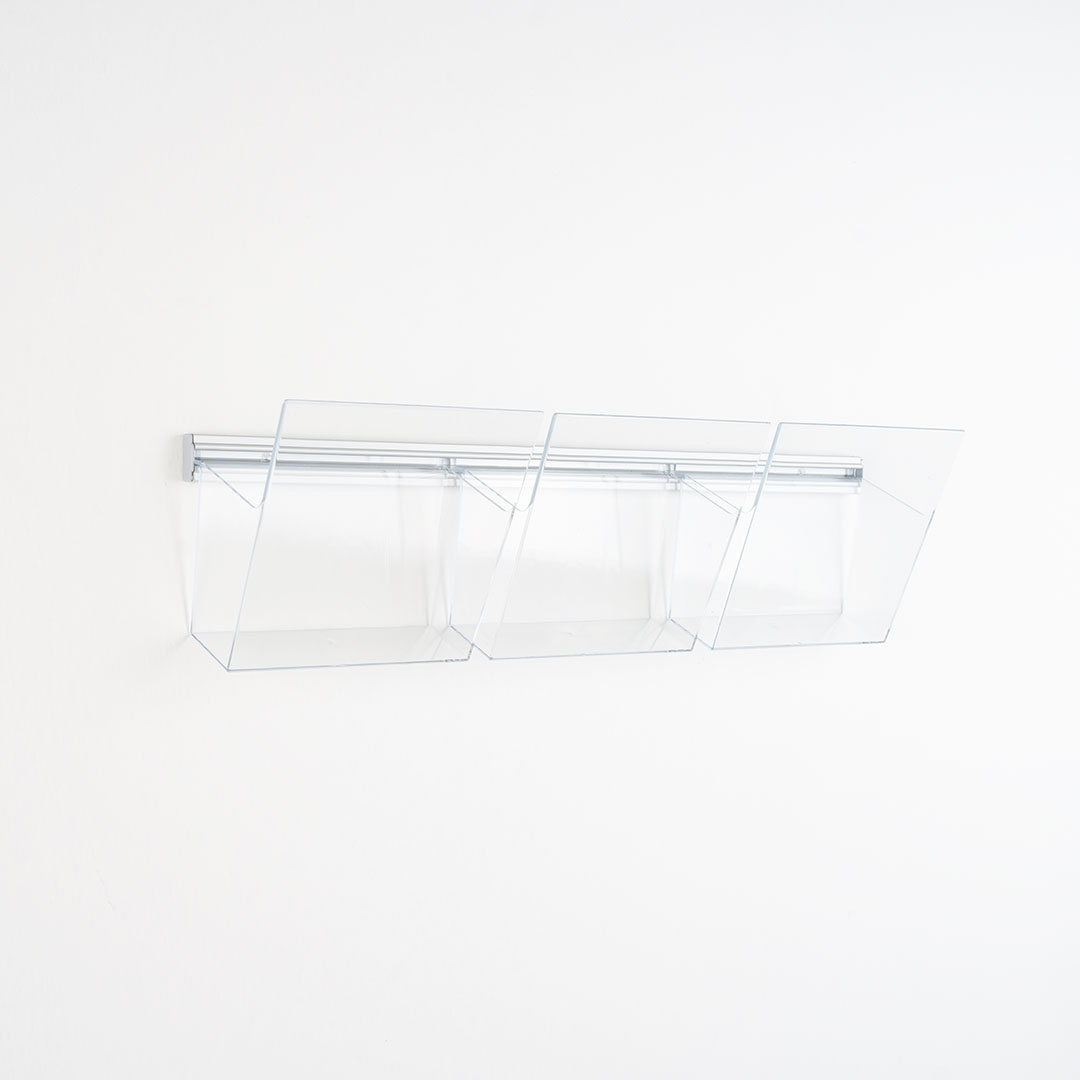 Porta depliant da parete con barra lunghezza 50cm e 3 tasche f.to A5 verticale