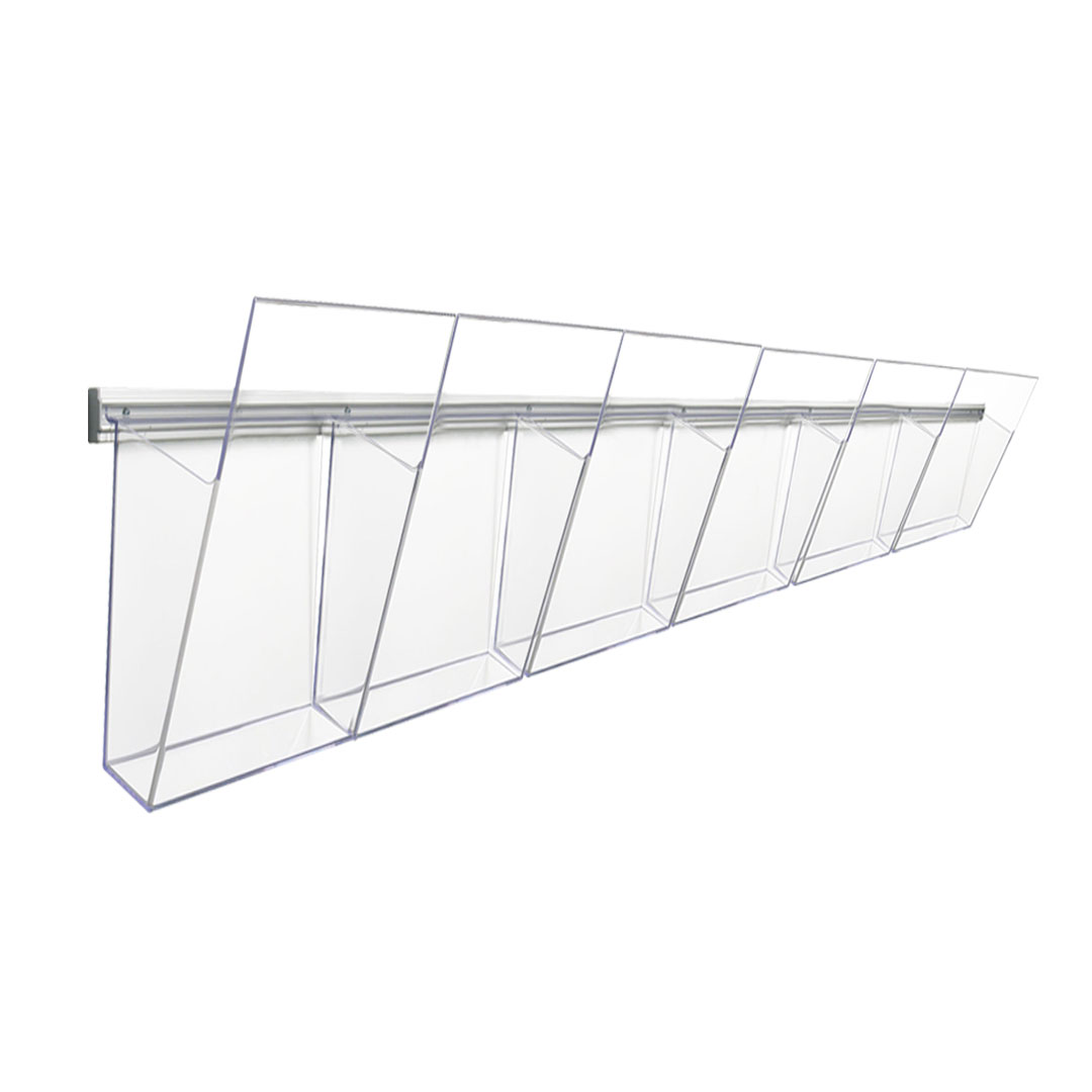 Portadepliant in plexi con barra in alluminio da 75cm e 6 tasche f.to A6