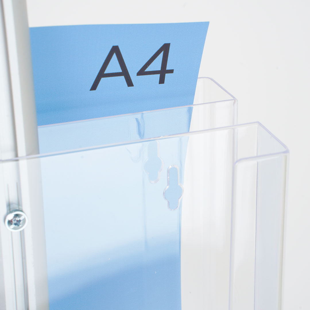 Migliora la visibilità della tua attività con l’espositore da pavimento ITV04_0081-011, progettato per presentare depliant e volantini in formato A4 con stile ed efficacia.