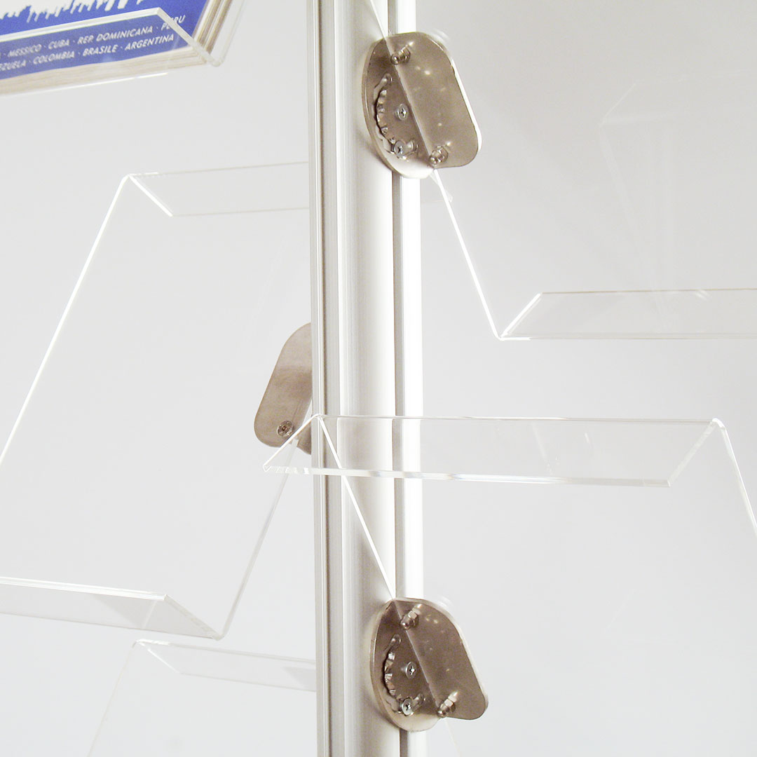 Espositore porta depliant con 9 ripiani inclinabili f.to A4 verticale in acrilico
