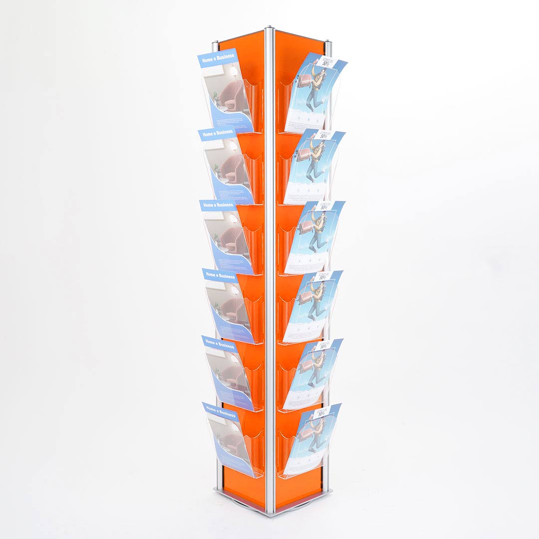 Espositore porta depliant girevole quadrifacciale con 24 tasche f.to A4 verticale con divisorio removibile