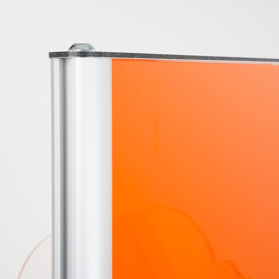 Espositore a pavimento serie COLOR:- versione monofacciale con 6 tasche f.to A4;- versione bifacciale con 12 tasche f.to A4 (6 per lato);- profili in alluminio;- pannello in plexiglass colorato.