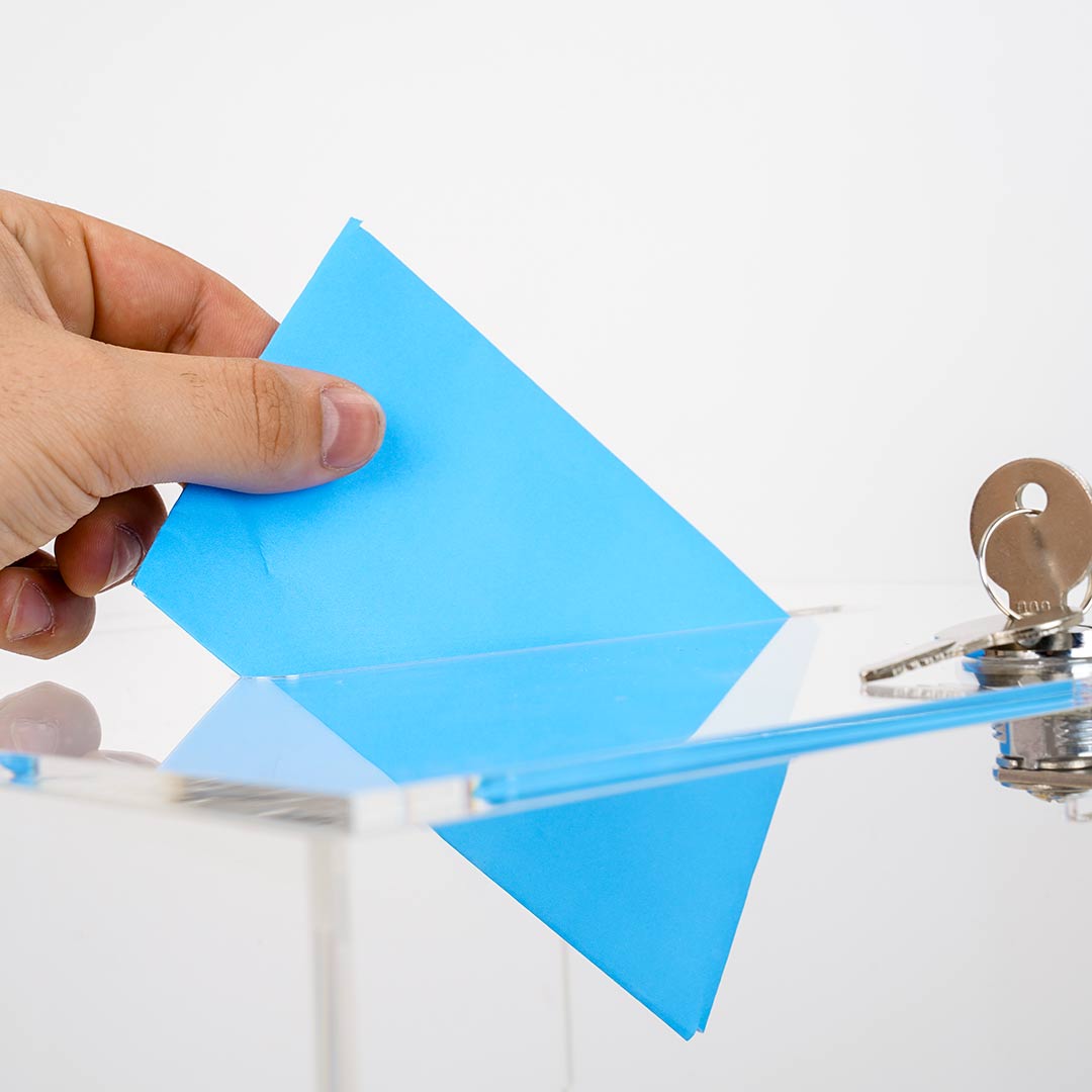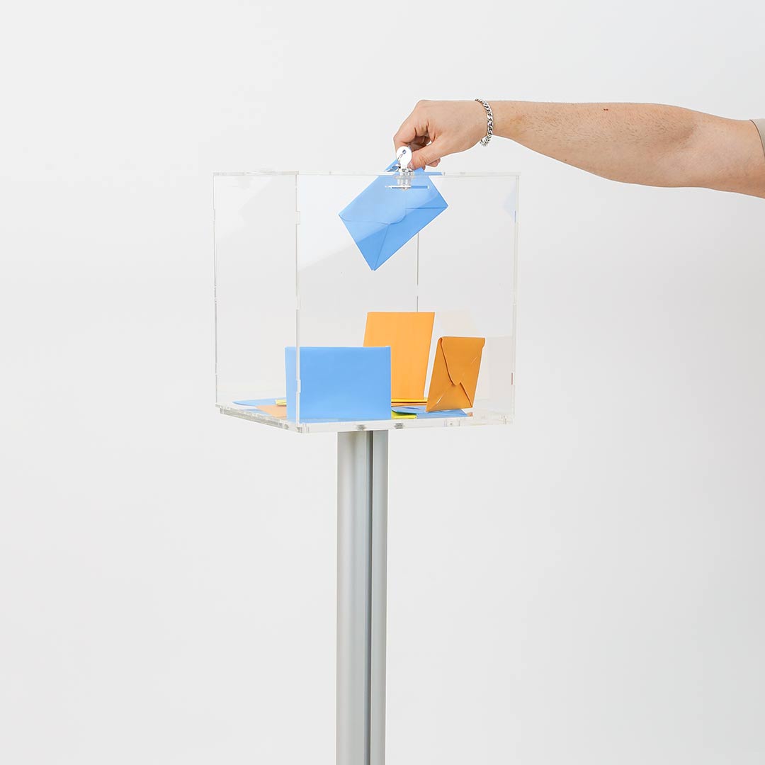 Grazie alla loro trasparenza e al design accattivante, le nostre urne in plexiglass attirano l’attenzione dei visitatori e incoraggiano la partecipazione, aumentando l’efficacia delle vostre iniziative.