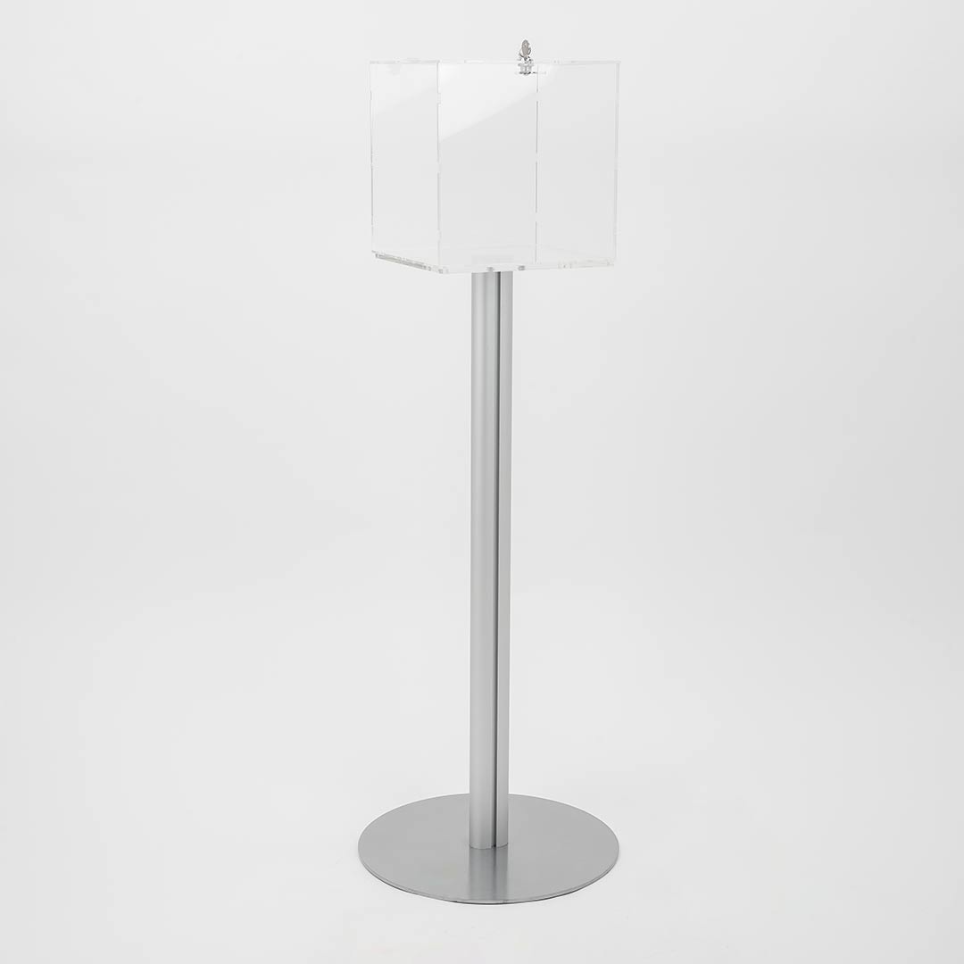 Piantana autoportante con cubo in acrilico trasparente completo di feritoia e serratura
