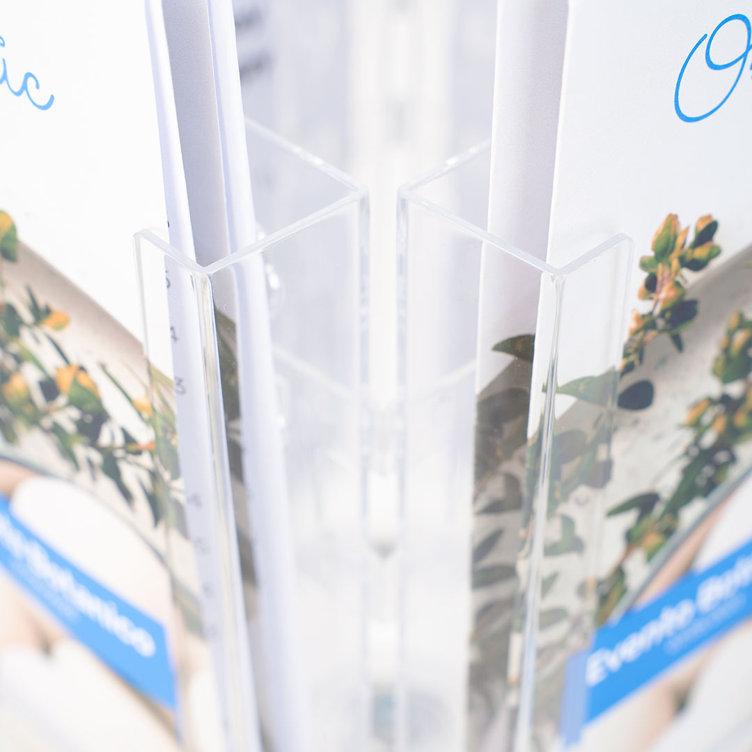 Questo portadepliant non è solo un espositore, ma un vero strumento di marketing. Perfetto per reception, showroom, fiere o punti vendita, cattura l’attenzione dei clienti e presenta le tue informazioni in modo professionale.