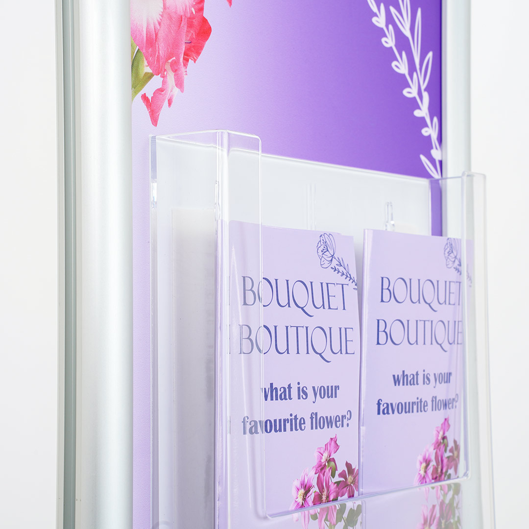 Il pannello in forex offre un’ampia superficie per la tua comunicazione visiva. La stampa diretta UV garantisce immagini nitide e colori brillanti, trasformando il tuo espositore in un potente strumento di marketing.