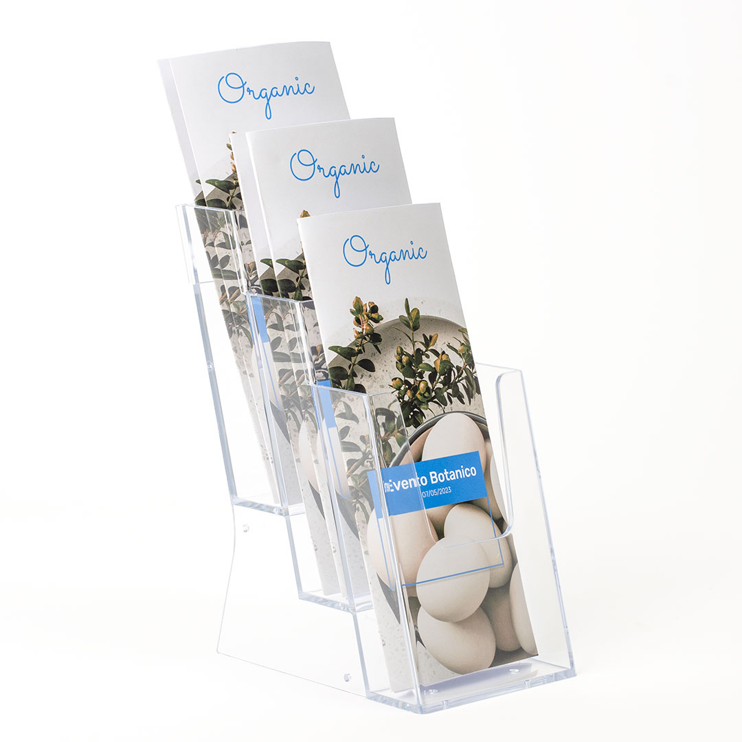 Porta depliant da banco a 3 tasche f.to 1/3 A4 verticale