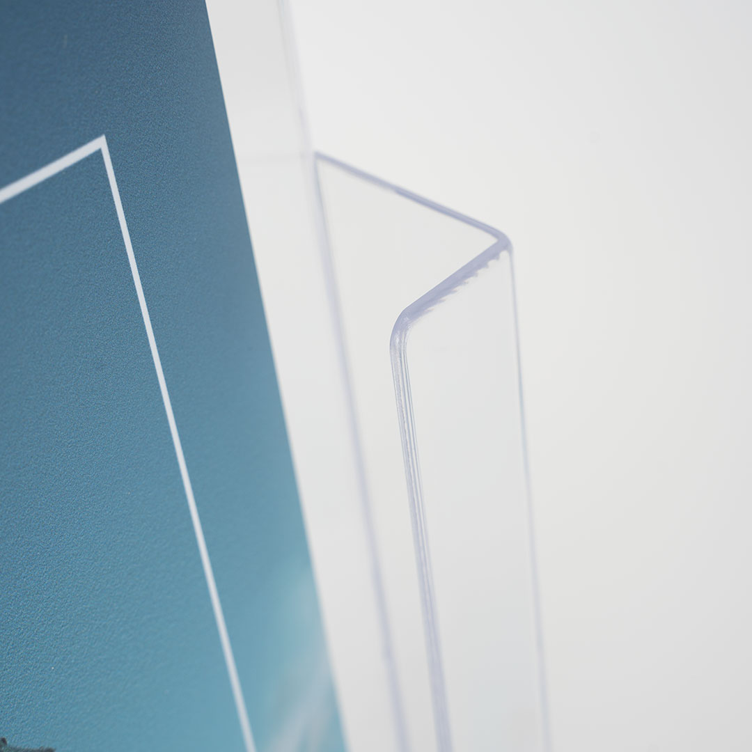Il Porta depliant da banco ITV01_0063 è progettato per migliorare la visibilità dei tuoi materiali informativi. Realizzato in plexiglass trasparente, offre tre tasche verticali in formato A4 (21 x 30 H cm), permettendoti di presentare in modo elegante e ordinato una varietà di depliant o brochure. La sua struttura robusta e il design minimale lo rendono ideale per qualsiasi ambiente, da uffici a sale d’attesa, da fiere a punti vendita.