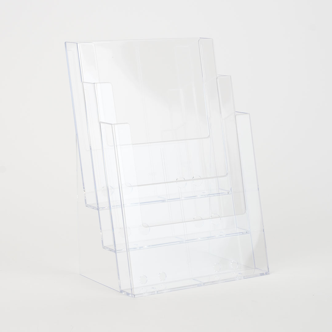 Porta depliant da banco in plexi, 3 tasche f.to A4 verticale
