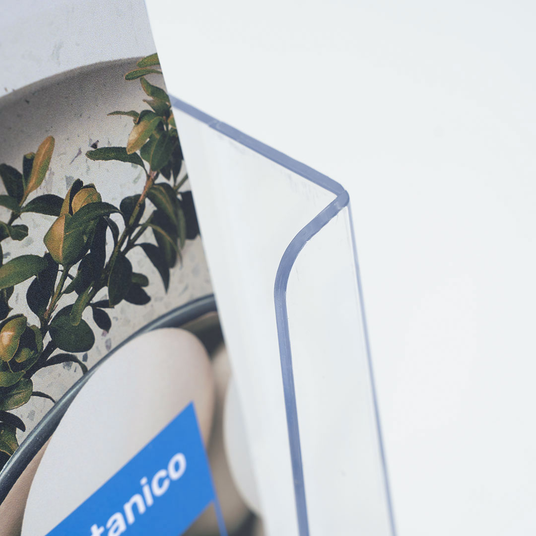 Grazie alla sua elegante finitura in plexiglass, questa porta depliant si integra perfettamente in qualsiasi ambiente, donando un tocco di raffinatezza alla tua attività. Le quattro ampie tasche ti permettono di esporre in modo ordinato e visibile i tuoi depliant, brochure o altri materiali informativi.