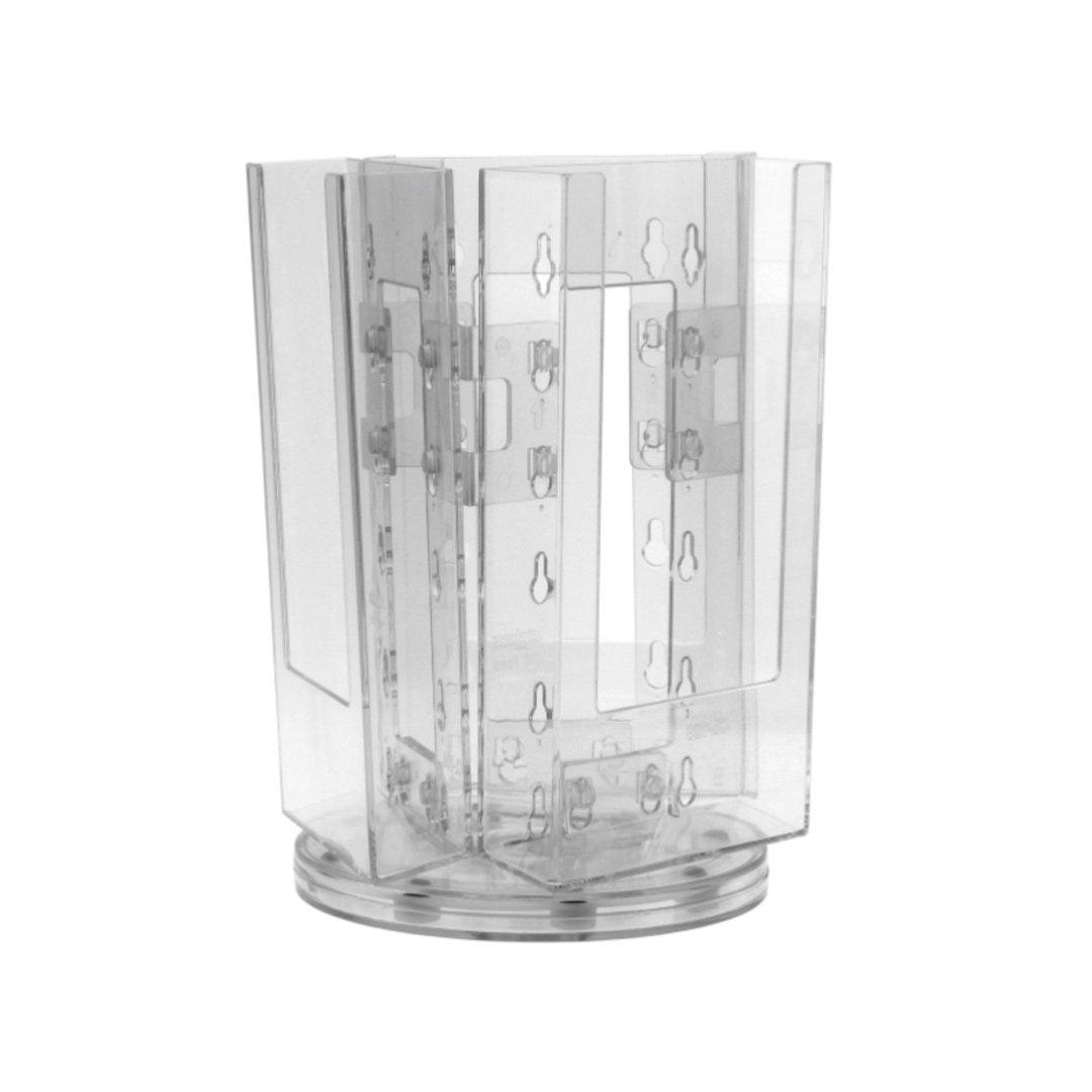 Modello disponibile: ITV01_0071 – Porta depliant da banco girevole in plexi a 3 tasche f.to 1/3 A4 (10 x 21 H cm).