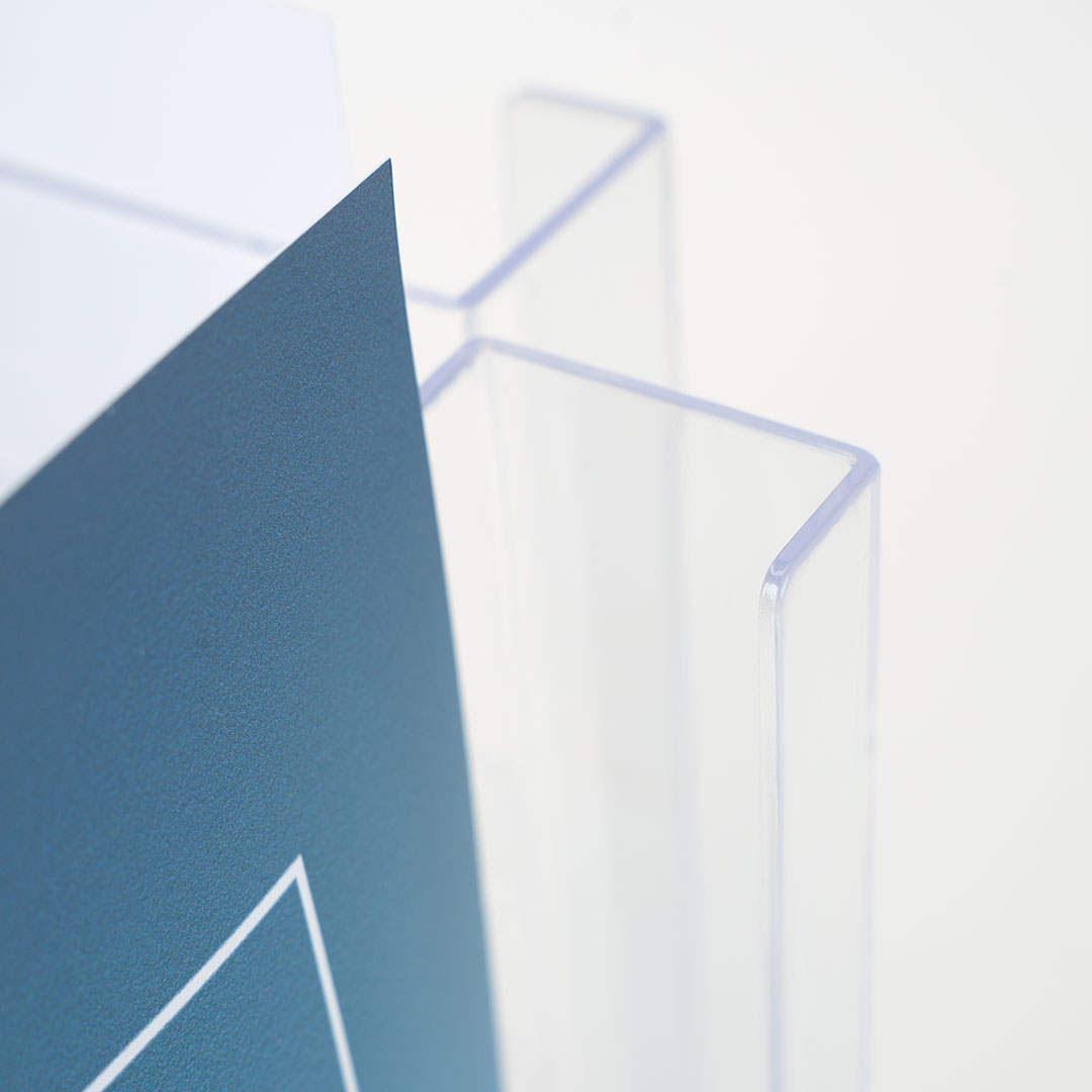 Realizzato in pregiato plexiglass, questo espositore ti permetterà di presentare in modo ordinato e accattivante i tuoi materiali promozionali, attirando l’attenzione dei tuoi clienti e migliorando l’immagine della tua azienda.