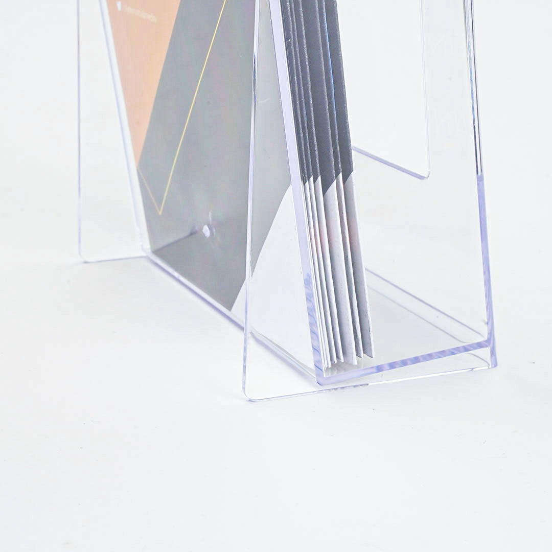 Porta depliant da banco o da parete linea SCRITTO®:- con fori per il fissaggio a muro;- con base per l’appoggio su banco;- fino a 4 tasche 1/3 di A4;- in stirene.