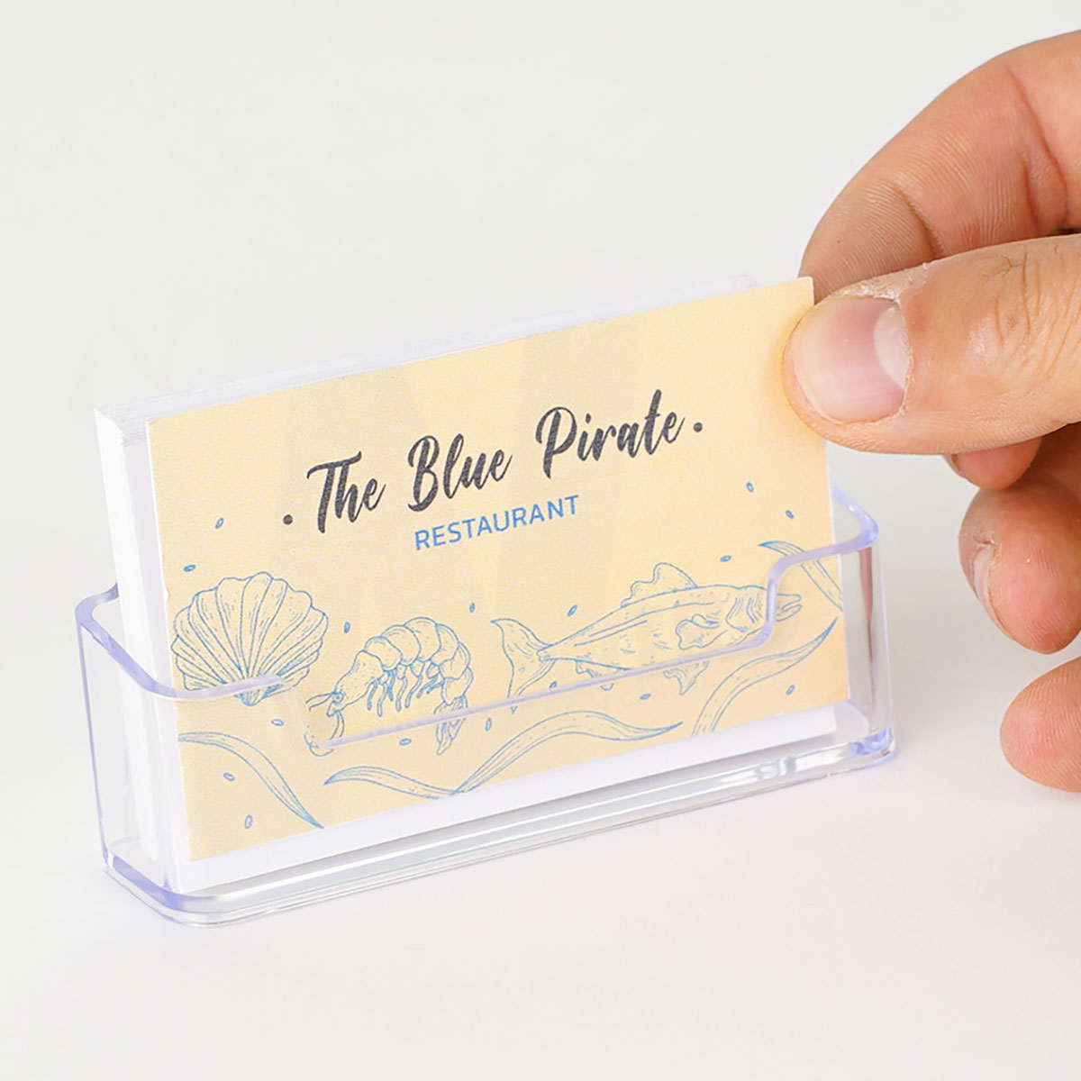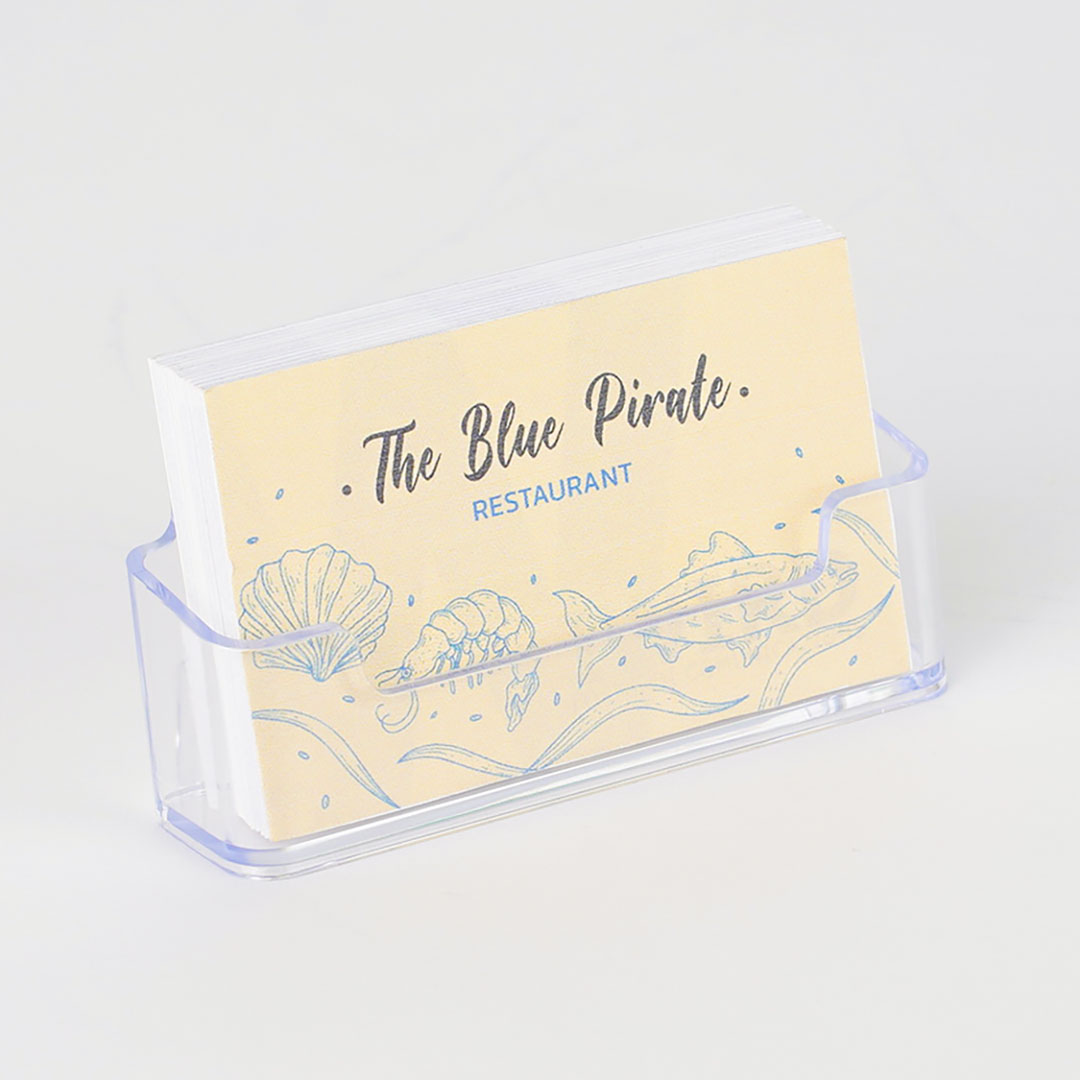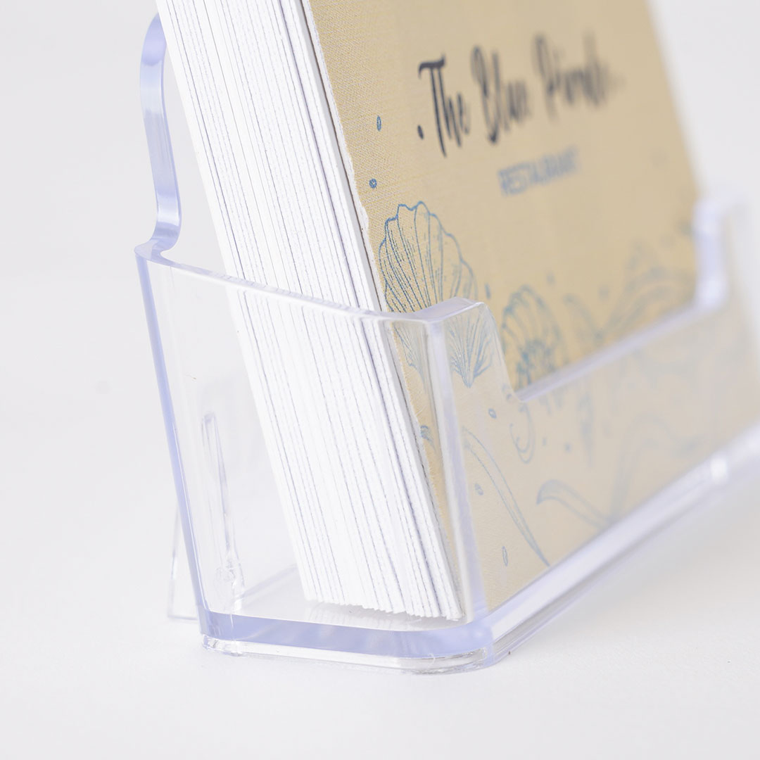 I porta biglietti da visita da banco mono tasca raccolgono in modo ordinato i biglietti da visita che saranno sempre alla portata del cliente. Il pratico scomparto di cui sono dotati può ospitare biglietti da visita fino a 9,3 cm per il formato orizzontale e fino a 5 cm per il formato verticale. Ordina i porta biglietti da visita da banco linea SCRITTO®, li riceverai in 24/48 ore.