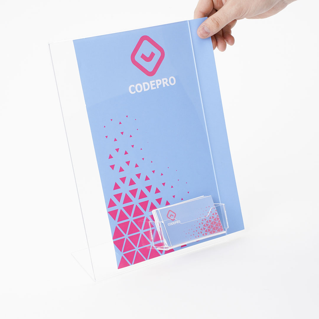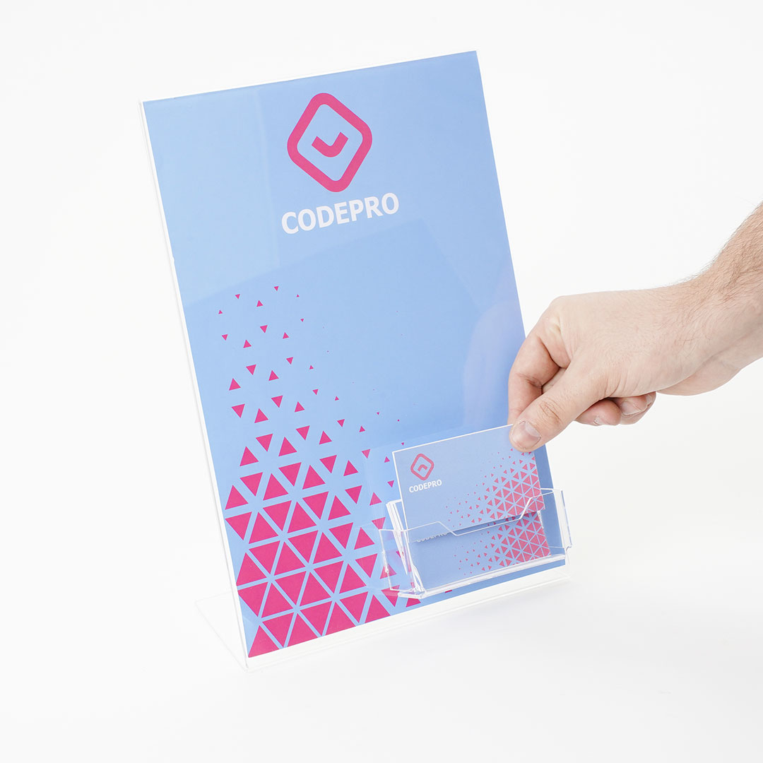 Questo porta avvisi in plexiglass monofacciale è perfetto per posizionare in bella vista i vostri biglietti da visita, promuovere offerte speciali o informare i clienti sui servizi della vostra attività.